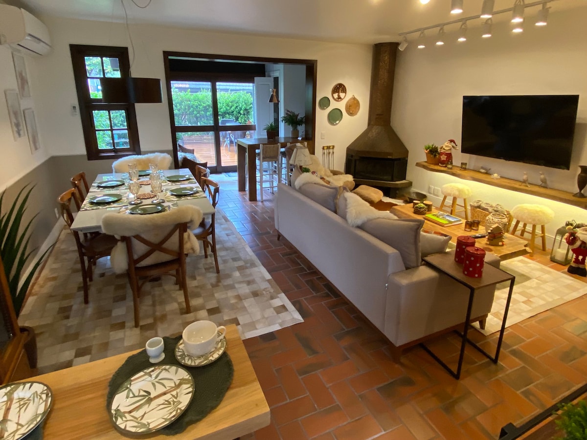 Gezellig huis in een omheind condo in het centrum van Gramado, met inheemse bossen en plein voor je. Extreem rustig gelegen en geweldig voor wandelingen. Airconditioning in alle delen, open haard in de woonkamer en in de grote slaapkamer, twee badkamers met gasverwarming. Volledige wasserette en keuken met een houtfornuis. Het is intiem op de entree. Buitenbalkon met uitzicht op het inheemse bos. Open garage. Wifi en Apple TV, Blue-ray, twee lcd-tv 's.