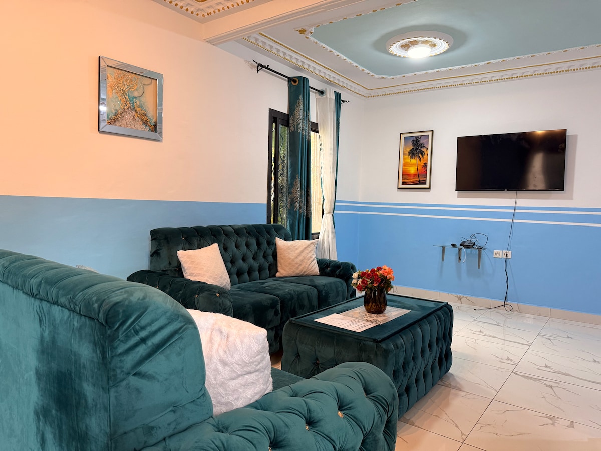 De Residence Créolia is een oase van rust en comfort op 700 meter van de oceaan, op 10 minuten van het centrum van Kribi, op 15 minuten van de Golf de Kribi, op 20 minuten van de watervallen van de Lobé. Het werd in juli 2024 geopend. Deze 3 kamers van 104 m2 kijken uit op een panoramisch terras van 31 m2 met uitzicht op de tuin voorzien van een beveiligd bovengronds zwembad. De ruime woonkamer van 40m2 heeft een woonkamer met tv en set-top box en een grote eetkamer. Volledig uitgeruste moderne aparte keuken. Elke slaapkamer heeft 1 badkamer en 1 eigen terras.
