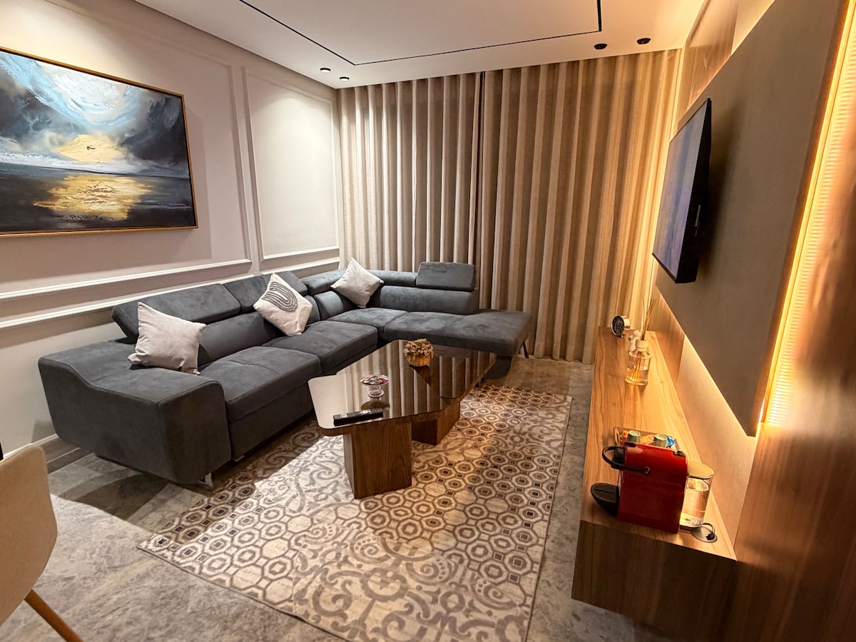 Perla 403💎, een oase van rust waar de elegantie van een moderne residentie combineert met het comfort van 5* hotels in het hart van Casablanca! Ontspan in een ruime woonkamer met een modern design, uitgerust met een 55-inch smart-tv met Netflix en IPTV voor absolute ontspanningsavonden. De kamer, een echt gezellig nest, belooft rustige en herstellende nachten ☁️ Kijk vanaf je eigen balkon naar de prachtige zonsondergangen van de stad, waardoor elk moment van je verblijf onvergetelijk wordt! ✨