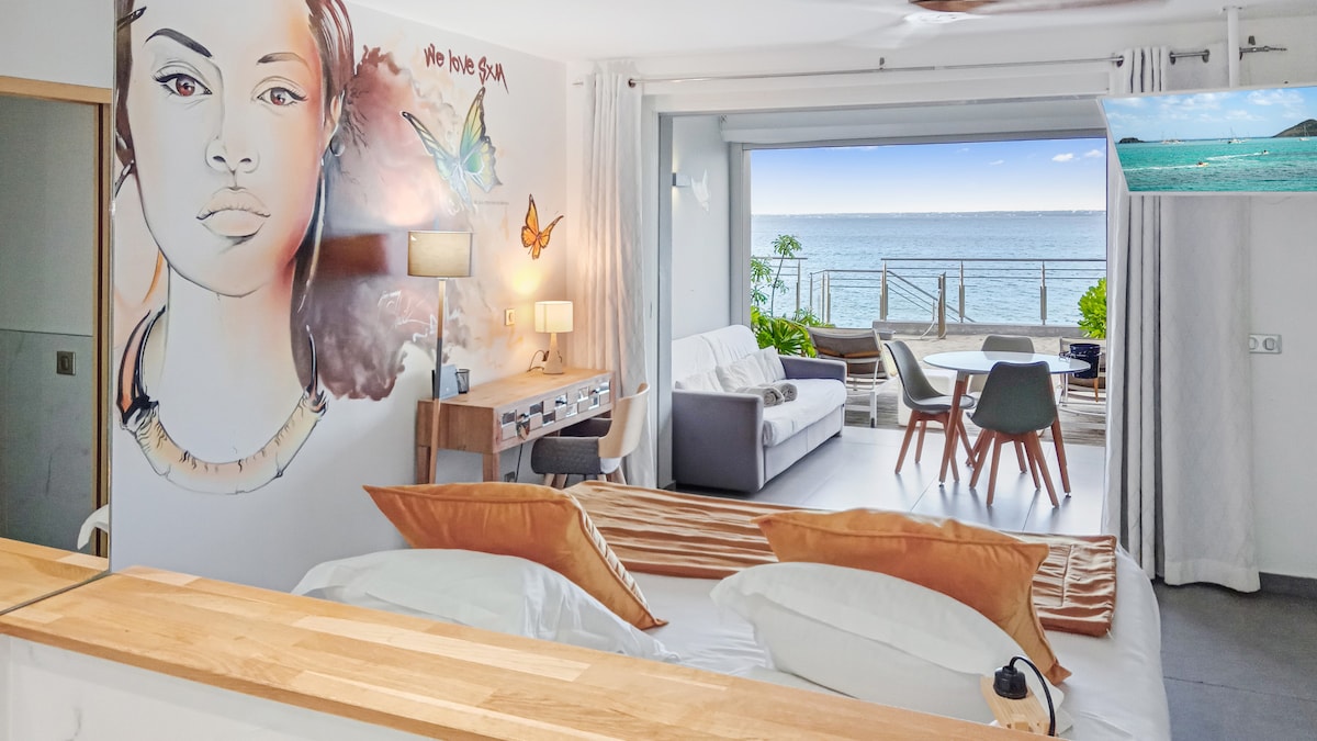 Wake up to ocean views 🌊 in this cozy beachfront duplex in Grand Case 🏝️. Enjoy a bright living area, fully equipped kitchen, and a bedroom with a private terrace overlooking Anguilla 🇦🇮. Wi-Fi everywhere – even on the beach! Walk to top-rated restaurants 🍷 or nearby Friar’s & Happy Bay 🌿. Free parking 🚗. Perfect spot for relaxing, dining, and soaking up island charm ☀️.