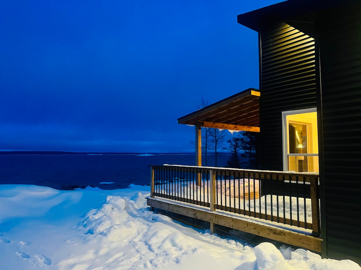 Beheerd door de bekroonde Riverwood Inn is een volledig functioneel chalet van 1200 vierkante meter aan zee met een duidelijk uitzicht op het water en buiten luxe, waaronder een bubbelbad! Grote open woonkamer, eet- en keukenruimte met kathedraalsparrenplafonds, berkenvloeren en een centrale 14'rotshaard en AV-centrum. Buiten is voorzien van een cederhouten dek van 3 verdiepingen dat aanvoelt alsof je op de werf zit. De aangeboden voorzieningen zijn volledig en uitgebreid.