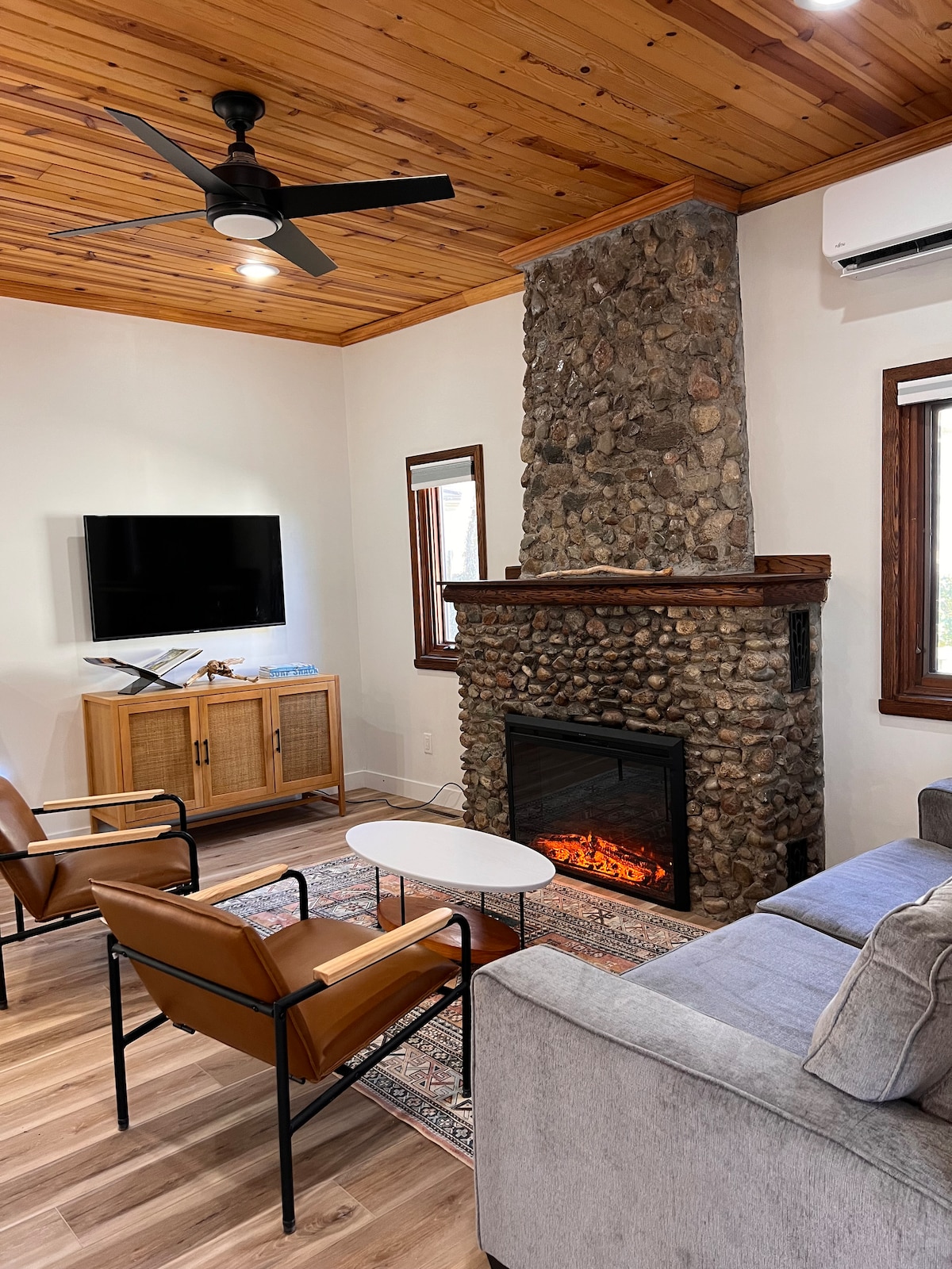 • Nieuw ingericht groot artistiek huis (3235 vierkante voet) in Saugatuck • Dichtbij Lake Michigan, je kunt het geluid van de golven horen! • 5-sterren klantervaring en service, bekijk mijn recensies! • Rustige buitenruimte met 2 afgeschermde veranda 's, vuurplaats en buiten dineren • 135" thuisbioscoop • Speelhal, tafelvoetbal en bordspellen • Luxe en high-end met designmeubilair en smaakvolle decoratie • Volledig gevulde open conceptkeuken en een eethoek Ontsnap aan alles door vandaag te reserveren!