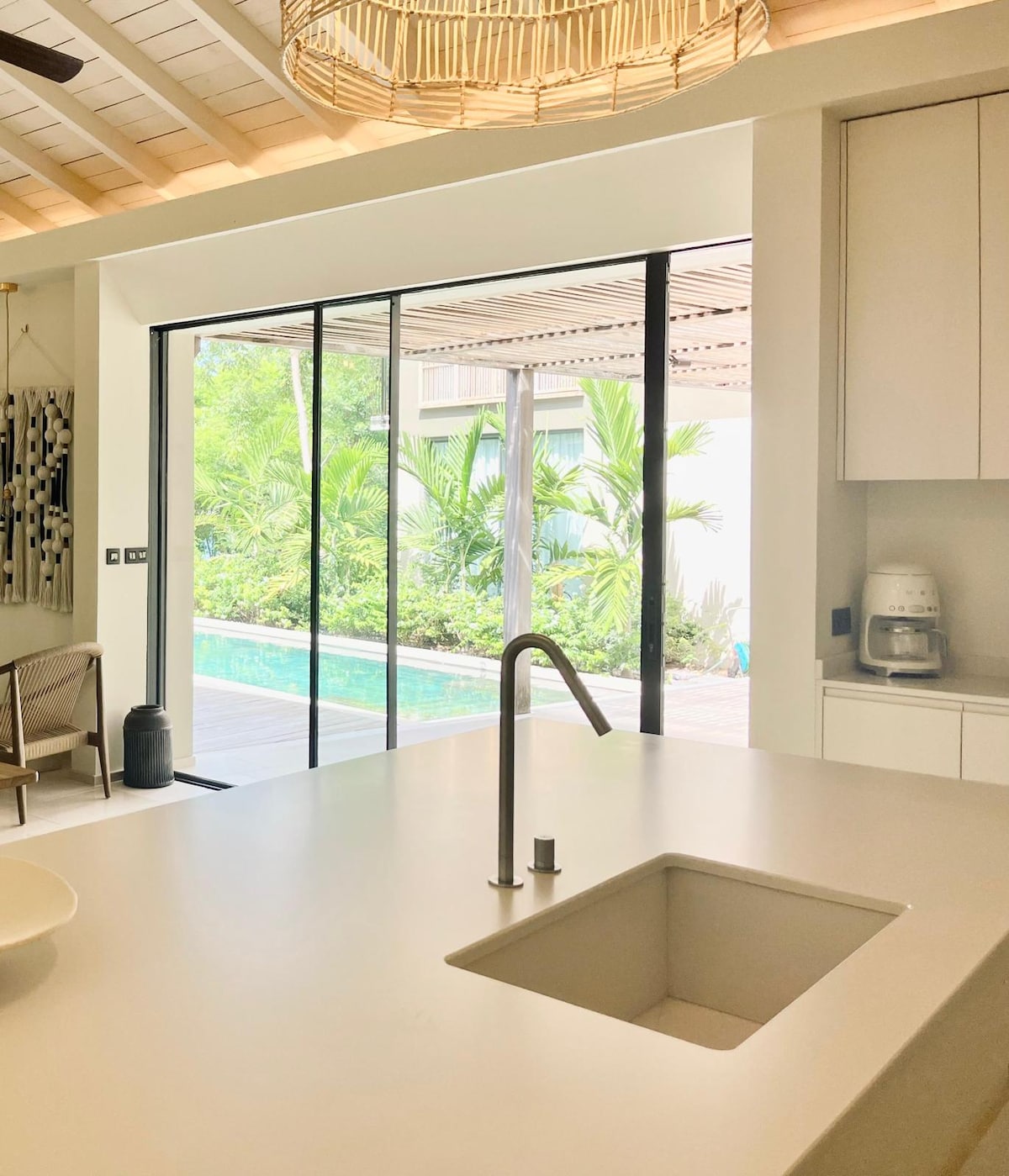 Gelegen op de hoogten van de Marin in Martinique, biedt de site een weelderig landschap omzoomd tussen zee en bergen. Hier is de alomtegenwoordige natuur gericht op het bieden van een verblijf op basis van welzijn en ontspanning. Het huis is ontworpen en ingericht om plaats te bieden aan twee zielszussen die rust en ontkoppeling nodig hebben. De ruimtes zijn comfortabel en zorgvuldig ingericht met aandacht voor detail en creëren een chique en verfijnde sfeer. Ideaal voor een stel alleen of met kind.