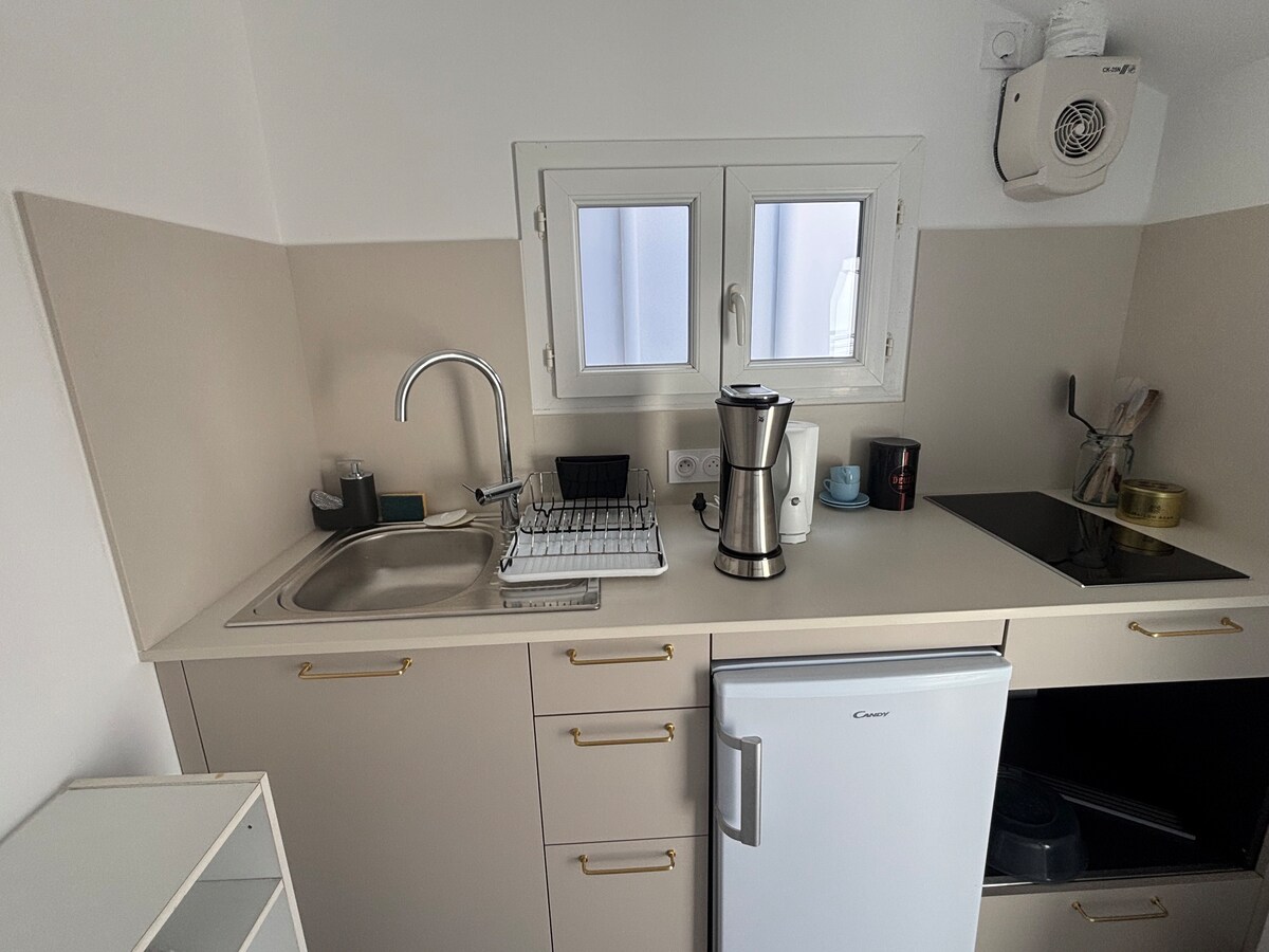 T1 rustig stadscentrum, 50 m strand, terras, gerenoveerd