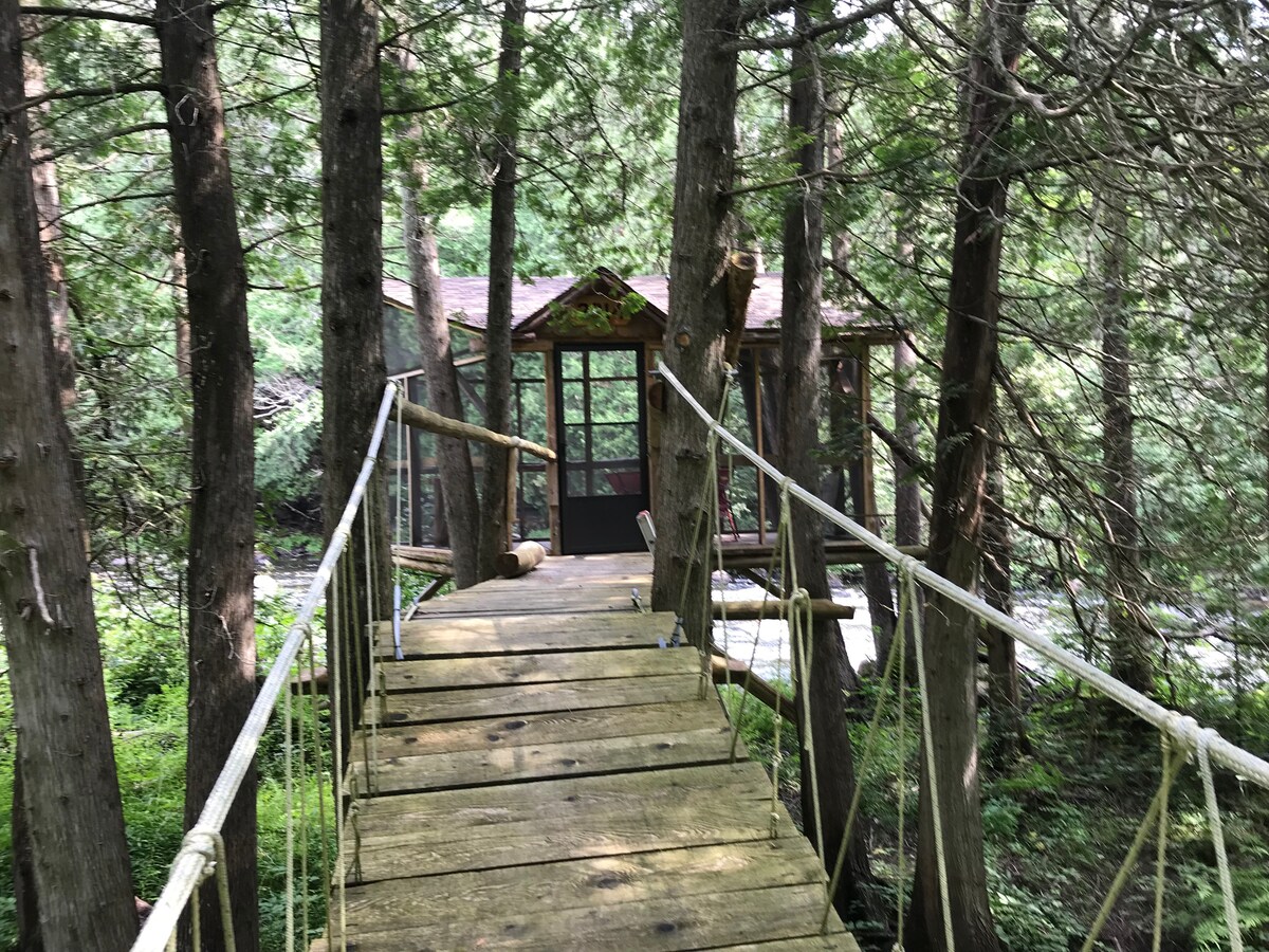 This is a tiny cottage in a sleepy little hollow that opens onto the Georgian Bay. Inside, each stone was carefully chosen and the woodwork was built, piece by piece, by two craftsmen who are highly skilled and passionate about repurposing. It's an art that will leave you in awe; especially if you're worried about climate crisis. The coat hangers are upcycled 100-year-old railway spikes! If you're looking for luxury you will be disappointed but if you're a minimalist you're going to love it.