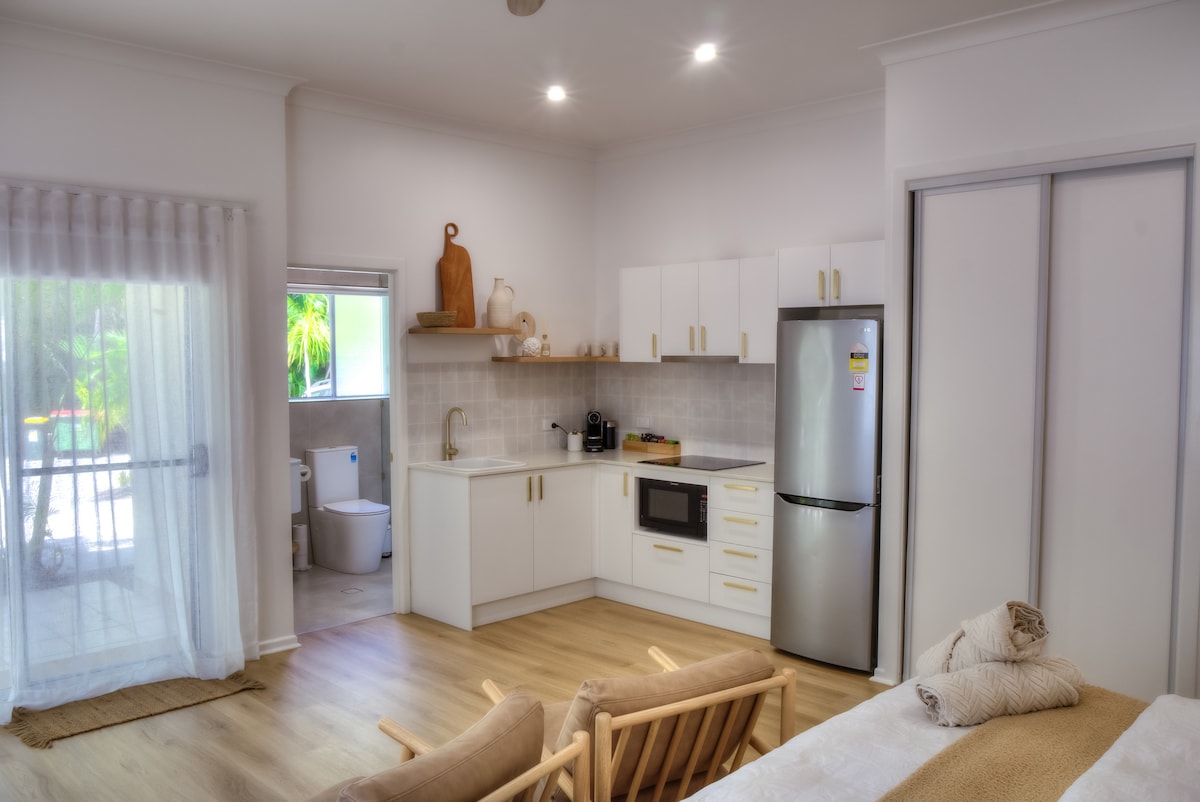 Dit stijlvol gerenoveerde studio-appartement biedt een comfortabel en ontspannen verblijf voor stellen of soloreizigers. Geniet van toegang tot alle voorzieningen van het resort, waaronder een zwembad en barbecuefaciliteiten. Deze studio ligt op slechts enkele minuten van het strand, winkels, restaurants en activiteiten en is de perfecte uitvalsbasis om alles te ontdekken wat Agnes Water te bieden heeft. Reserveer nu voor een echt luxueus en onvergetelijk verblijf.