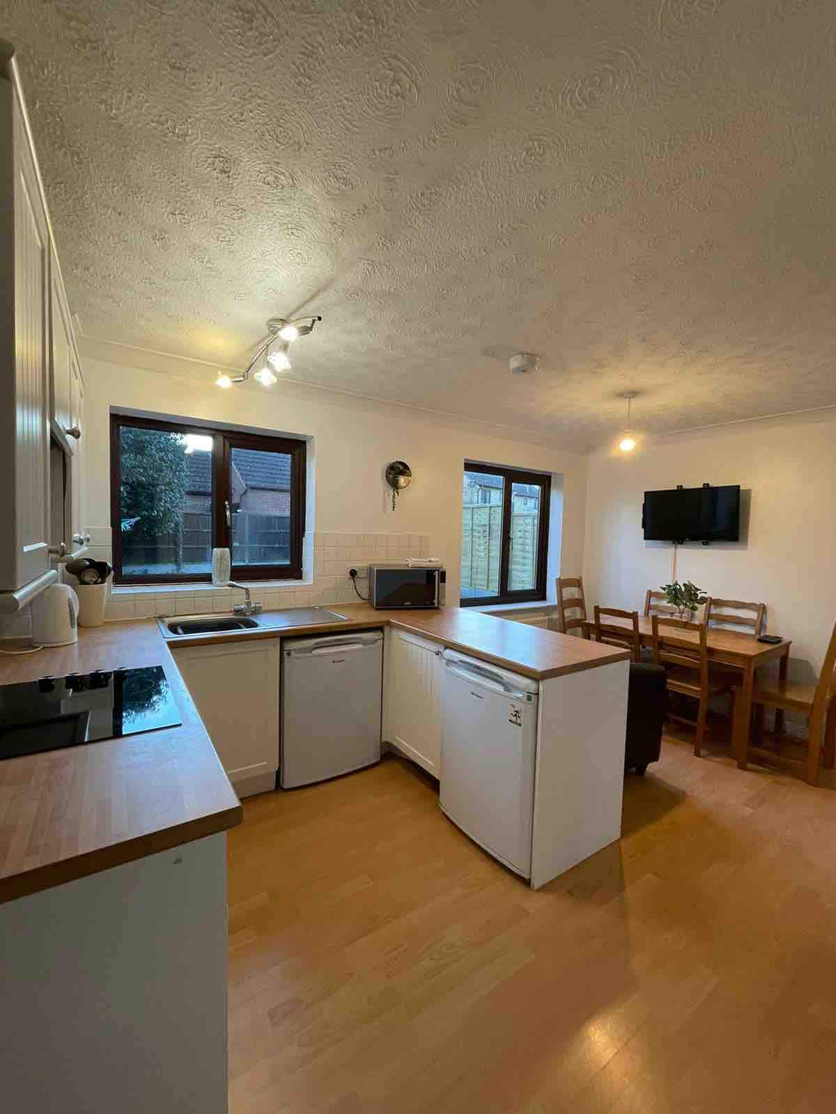 De schuur is gebouwd in 1634 en ligt aan de rand van een dorp op 5 meter van Market Harborough in Leicestershire. Het is in 2017 omgebouwd en ligt op ons terrein, maar staat er los van. Licht en luchtig, het is een kamer/open beneden, met ruimtes om te koken, te dineren en te ontspannen. Openslaande deuren leiden naar een mooie binnentuin, met stenen treden naar een verhoogd gebied, waar je de zonsondergang over de velden kunt zien. Boven is er een goed uitgeruste slaapkamer en badkamer met verreikend uitzicht over het land.