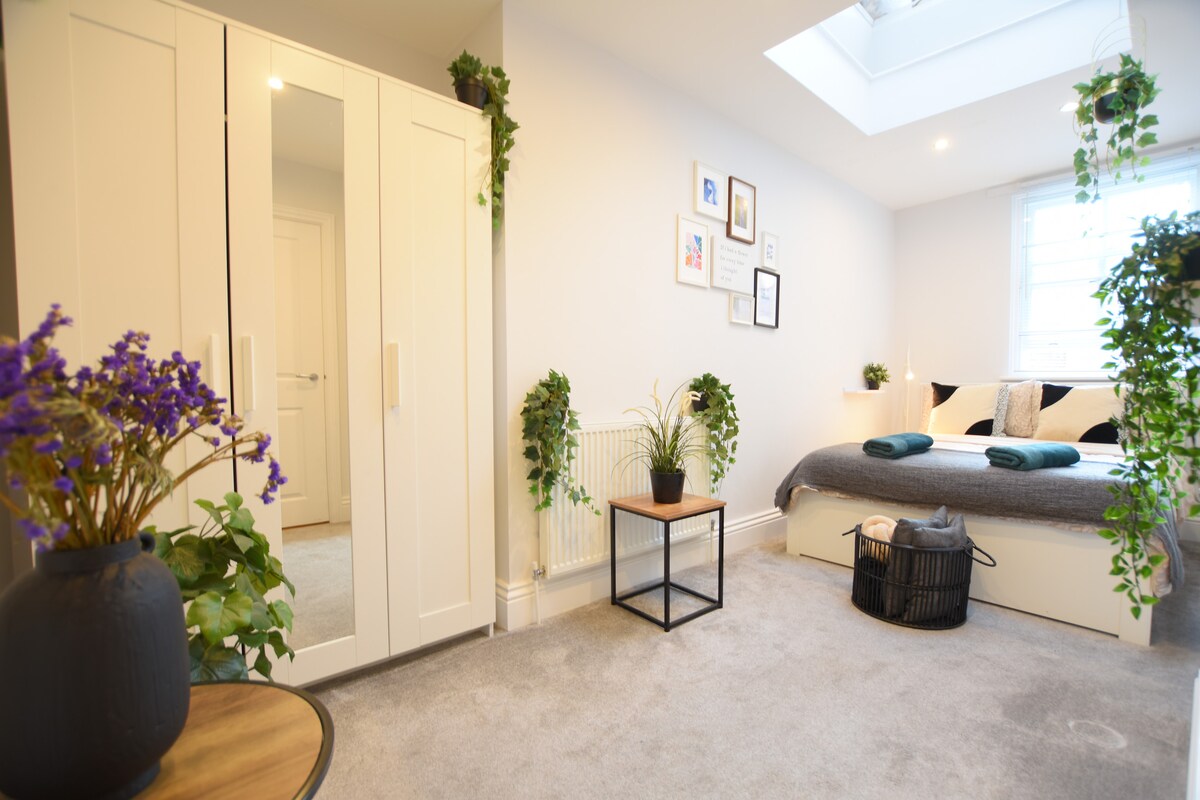 Gezellig en licht juweeltje ~ Battersea Park View ~ kingsize bed