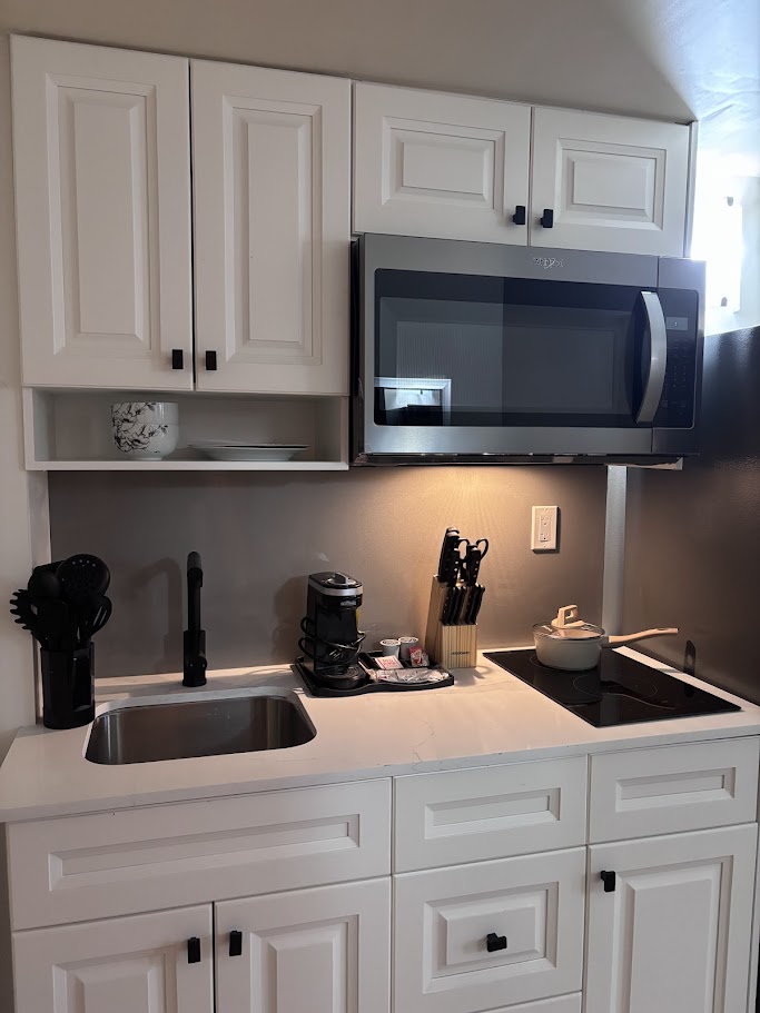 De appartementen bevinden zich in een prachtig gerestaureerd romaans gebouw uit 1888, zorgvuldig opnieuw ontworpen in 2024 om historisch karakter in evenwicht te brengen met modern comfort. Elk appartement is uitgerust met wasmachines en drogers in de unit, volledig uitgeruste keukens en Roku-streaming. Moderne badkamers zijn voorzien van opvallende terrazzo tegelwanden, wat een verfijnde eigentijdse uitstraling geeft in een historische omgeving. Ons standaard appartement met 1 slaapkamer en 1 badkamer heeft een queensize bed.