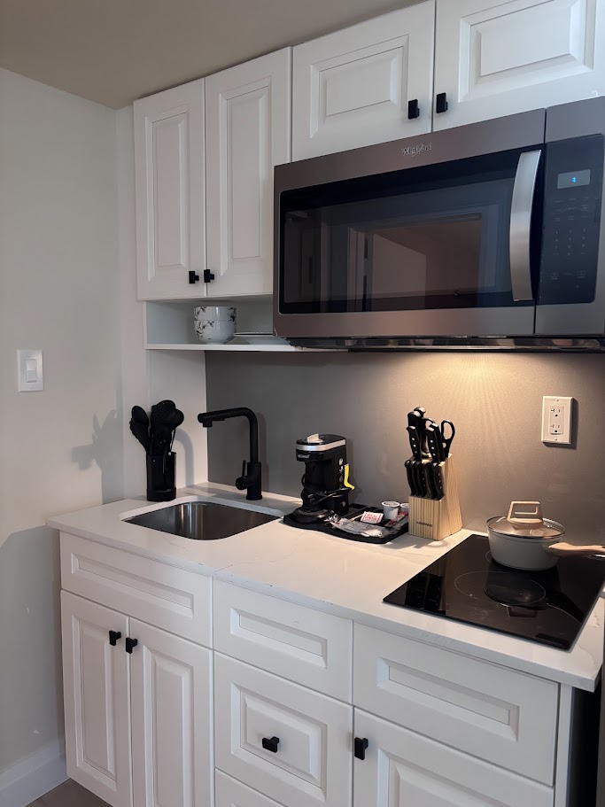 De appartementen bevinden zich in een prachtig gerestaureerd romaans gebouw uit 1888, zorgvuldig opnieuw ontworpen in 2024 om historisch karakter in evenwicht te brengen met modern comfort. Elk appartement is uitgerust met wasmachines en drogers in de unit, volledig uitgeruste keukens en Roku-streaming. Moderne badkamers zijn voorzien van opvallende terrazzo tegelwanden, wat een verfijnde eigentijdse uitstraling geeft in een historische omgeving. Ons Superior 1 slaapkamer 1 bad appartement, beschikt over een kingsize bed en een uitschuifbare slaapbank.