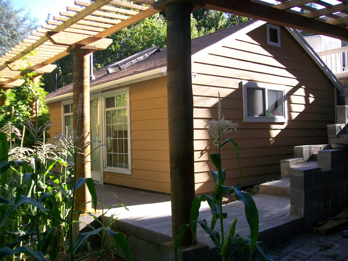 Stap door de tuinpoort en de boog en de buitentrap af naar een rustige, eigen en omheinde geheime tuin. Het 18x20 aangepaste huisje kijkt uit op de tuin. Een volledig uitgeruste zelfbedieningskeuken (koelkast, fornuis met oven en voorzieningen); water en douchekasten; wasmachine en droger en zitplaats, rondom het queensize bed met hemelbed. Je zult genieten van het gastenboek. Gemakkelijk aan/uit Interstate-5 naar Mt Shasta, Dunsmuir, McCloud, Mineral Springs en het hele jaar door activiteiten. Draai de oprit op en parkeer rechtdoor. Wees onze gast.