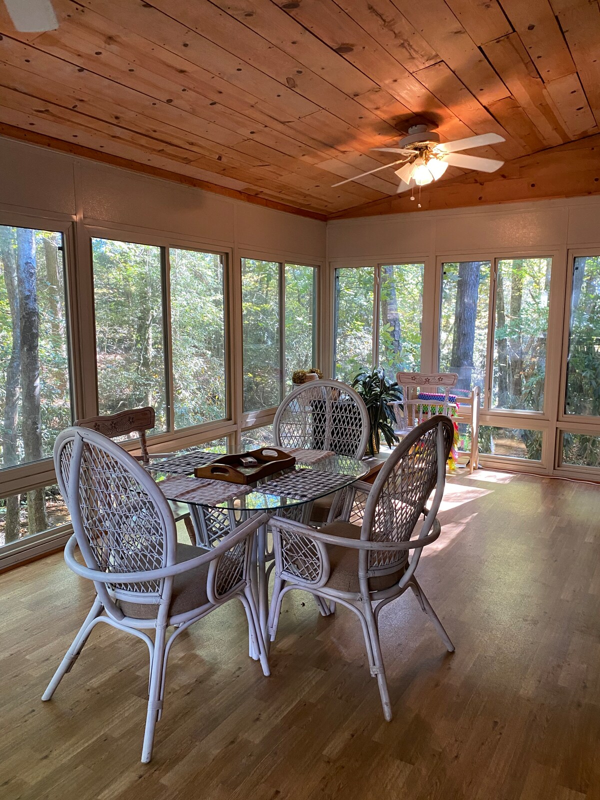 Geweldige hut aan de kreek, ontspan, geniet van de ongelooflijke bries van Matthews Creek vanuit het comfort van de Sun Room. Leun achterover op de overdekte veranda aan de voorkant of bij de vuurplaats en kijk naar de kinderen en huisdieren in de omheinde tuin. Ontspannen in de Sun Room kijken naar het water, spelletjes spelen, knutselen of lezen. Perfecte plek voor yoga! Wandelen, vissen, zwemmen en buitenleven in overvloed! Eindelijk een echt rustieke hut! Huisdiervriendelijk! $ 75,00 per huisdier met een paar gezond verstand huisdierenregels.