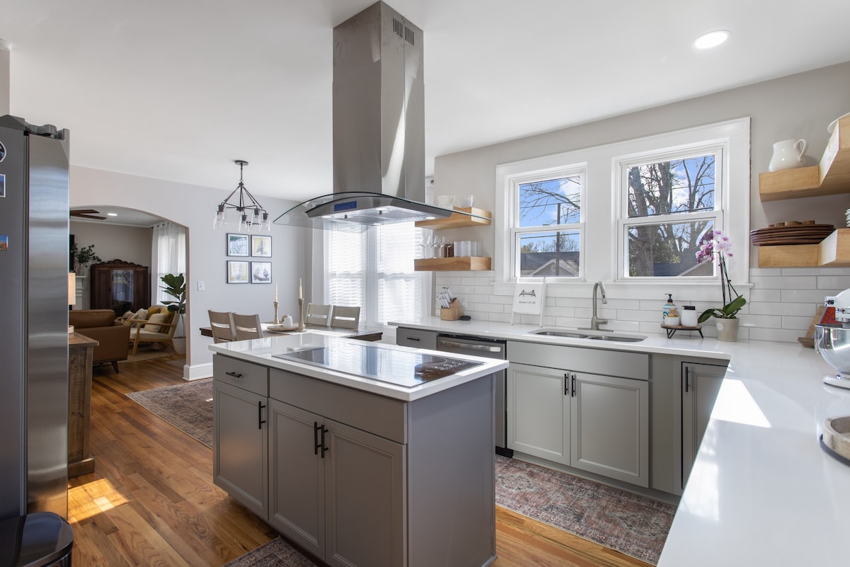 ✨ Welkom in Ginchyville ✨ Op zoek naar een leuke, stijlvolle en ruime accommodatie op slechts enkele minuten van het centrum? Ben je een Pickleball-fanaat? Ginchyville heeft alles wat je nodig hebt voor de perfecte ontsnapping — of je nu een familievakantie, een vrijgezellenweekend of een groepsretraite plant! Ons vintage-geïnspireerde huis met 5 slaapkamers en 2,5-bad ligt op slechts 10 minuten van het centrum van Greenville en op 20 minuten van GSP Airport. Het biedt modern comfort met veel ruimte om te ontspannen en te spelen.