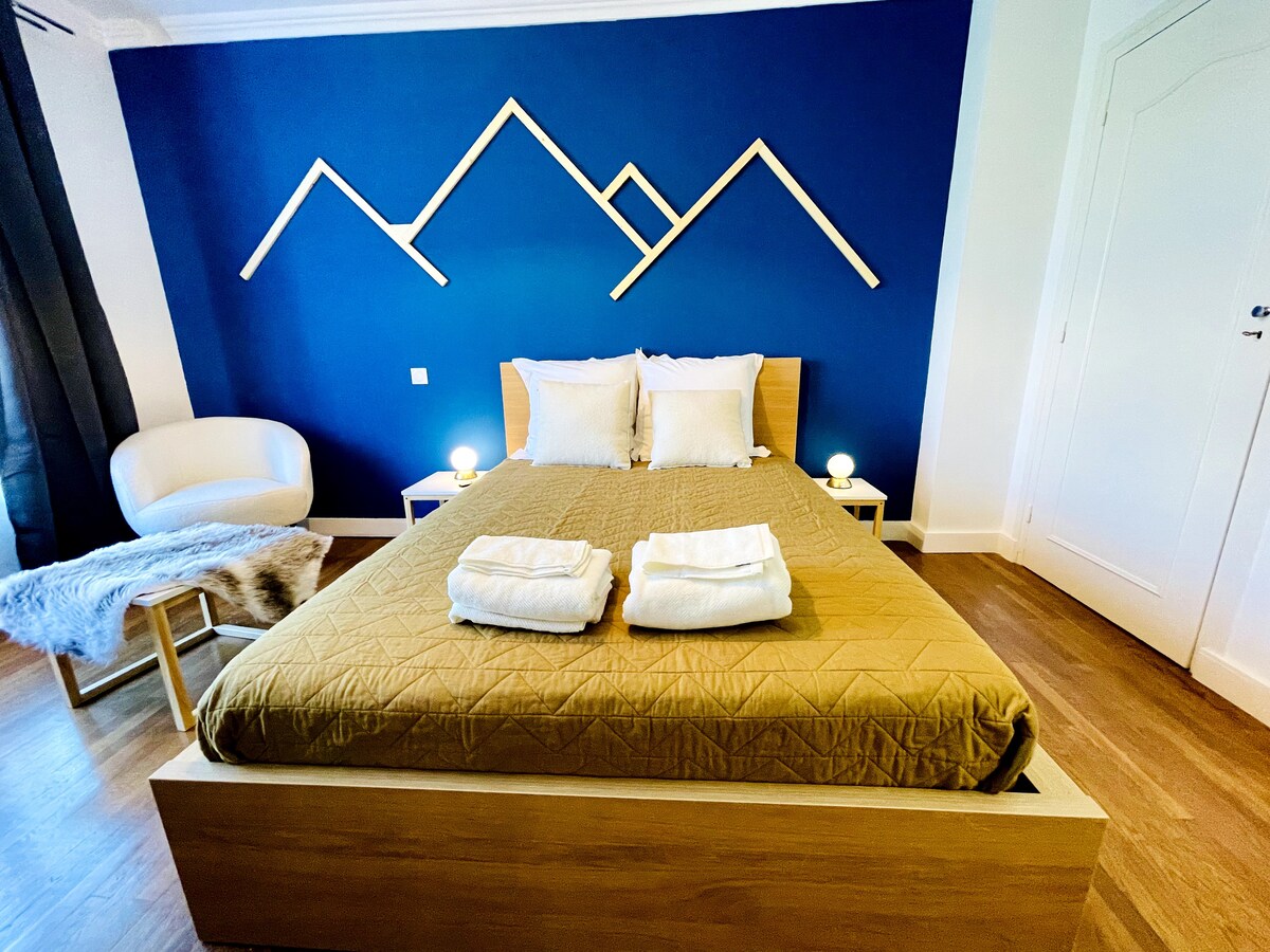 Licht en designappartement, uitzicht op de bergen