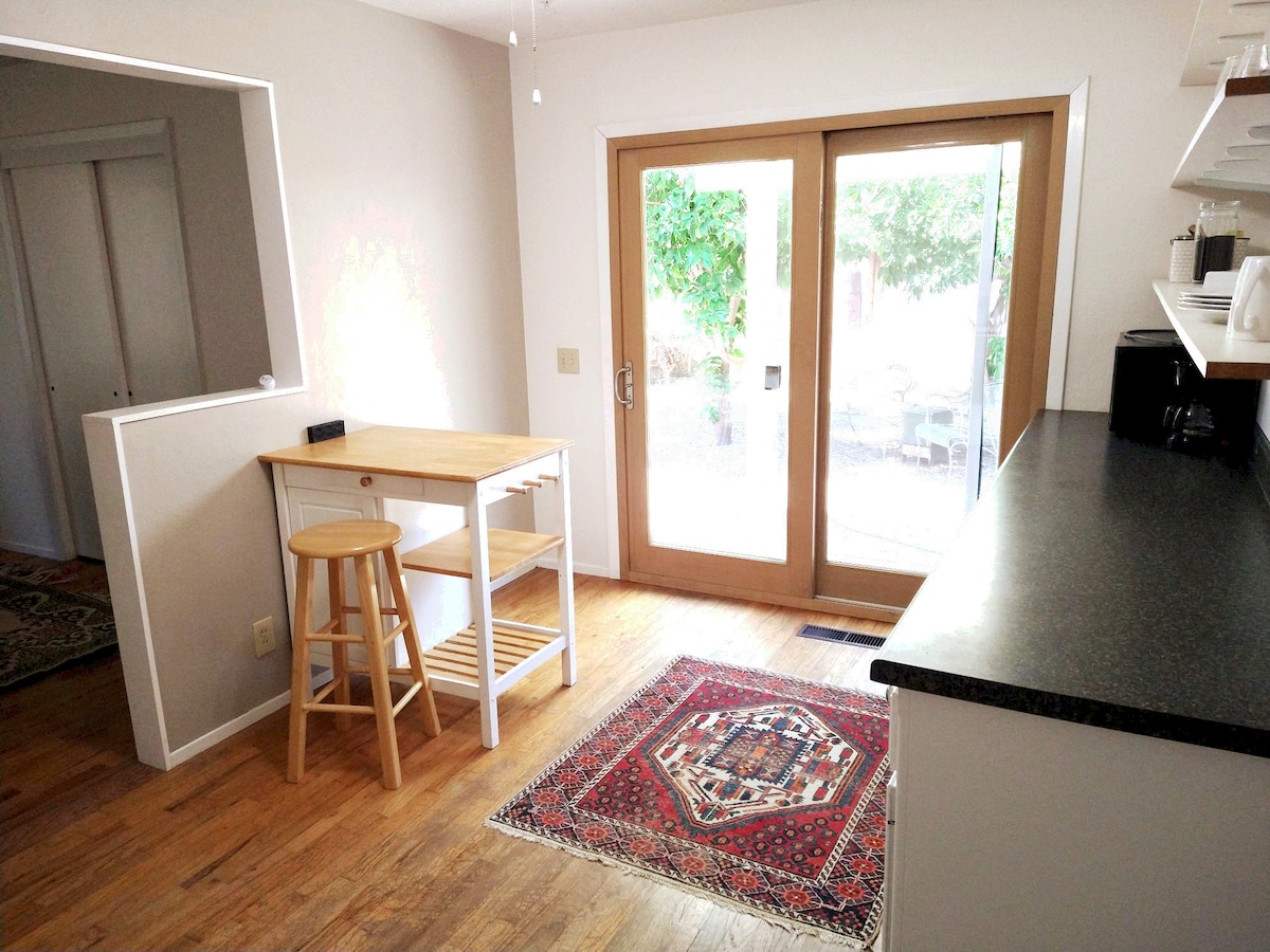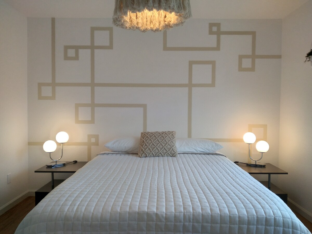 De Black and White Bungalow is een onlangs gerenoveerde moderne maar rustieke studio. Gelegen in een rustige buurt in Yuba City is het precies de plek waar je kunt ontspannen terwijl je in de stad bent. Het heeft 11 voet gewelfde plafonds, granieten aanrechtbladen, directe boiler en nog veel meer. Met veel aandacht voor detail ingericht kun je niet anders dan deze ruimte geweldig vinden.