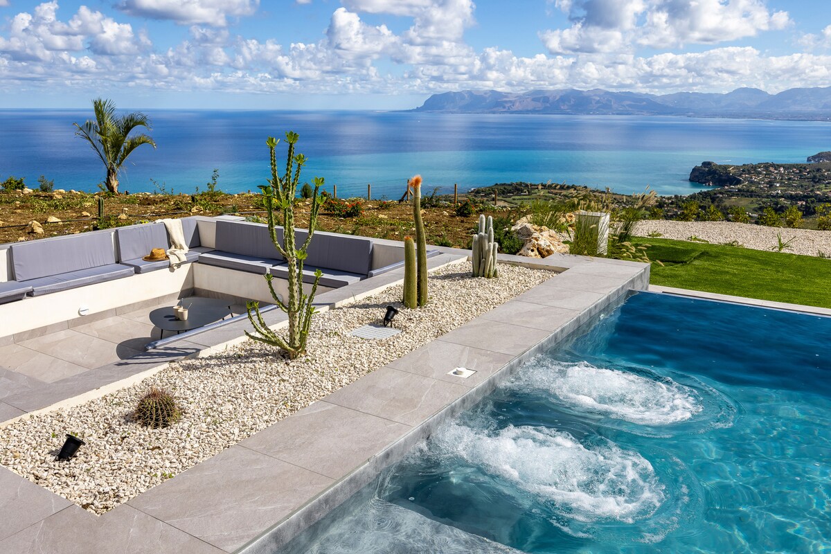 De villa ligt op slechts 3 km van Castellammare del Golfo en bestaat uit drie slaapkamers, twee badkamers met bad en douche en een wasruimte, een grote eetkamer, een keuken en een zeer groot en mooi verwarmd zwembad met hydromassage . Het zwembad, met een prachtig uitzicht op zee, is altijd open maar het wordt verwarmd van MAART tot NOVEMBER. het werkt heel goed als de buitentemperatuur meer dan 15 graden is.
