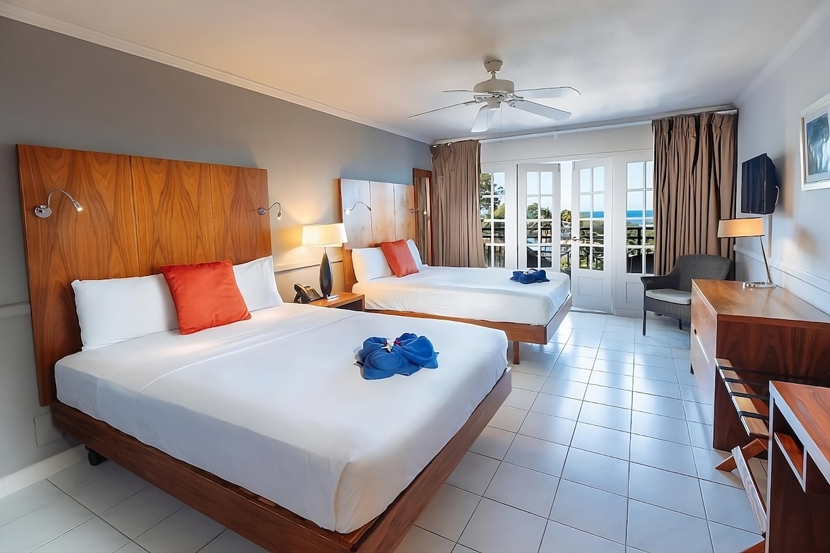 This Standard room with views of the Gardens and Hillside. Rooms come with either a King bed or two Full size beds (Based on availability) All en-suite bathrooms feature granite vanity tops, hairdryers and illuminated magnifying mirrors. All rooms offer free high-speed Wireless Internet Access, USB charge ports, dual voltage throughout (110v/220v) and coffee/tea facilities. Room comes with daily Housekeeping, Pool Access, Gym Access and complimentary Buffet Breakfast at Ti Bananne Restaurant.