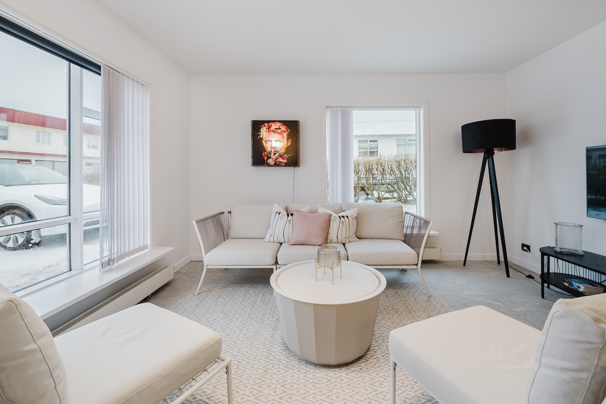 New large in heart of Reykjavík, Iceland. NOTICE that 3rd bedroom is made out of livingroom with curtains, but good privacy This luxury 3- bedroom, 2-bath apartment furnish with new sleek Scandinavian design. Located in heart of Reykjavík and everything is just few min walks to Reykjavík main attraction’s from Hallgrímskirkja, all best restaurants coffee’s, Harpa and all you want to see. It’s perfect for couples or families, enjoy free garages parking, fast Wi-Fi Everything new and fresh ✨
