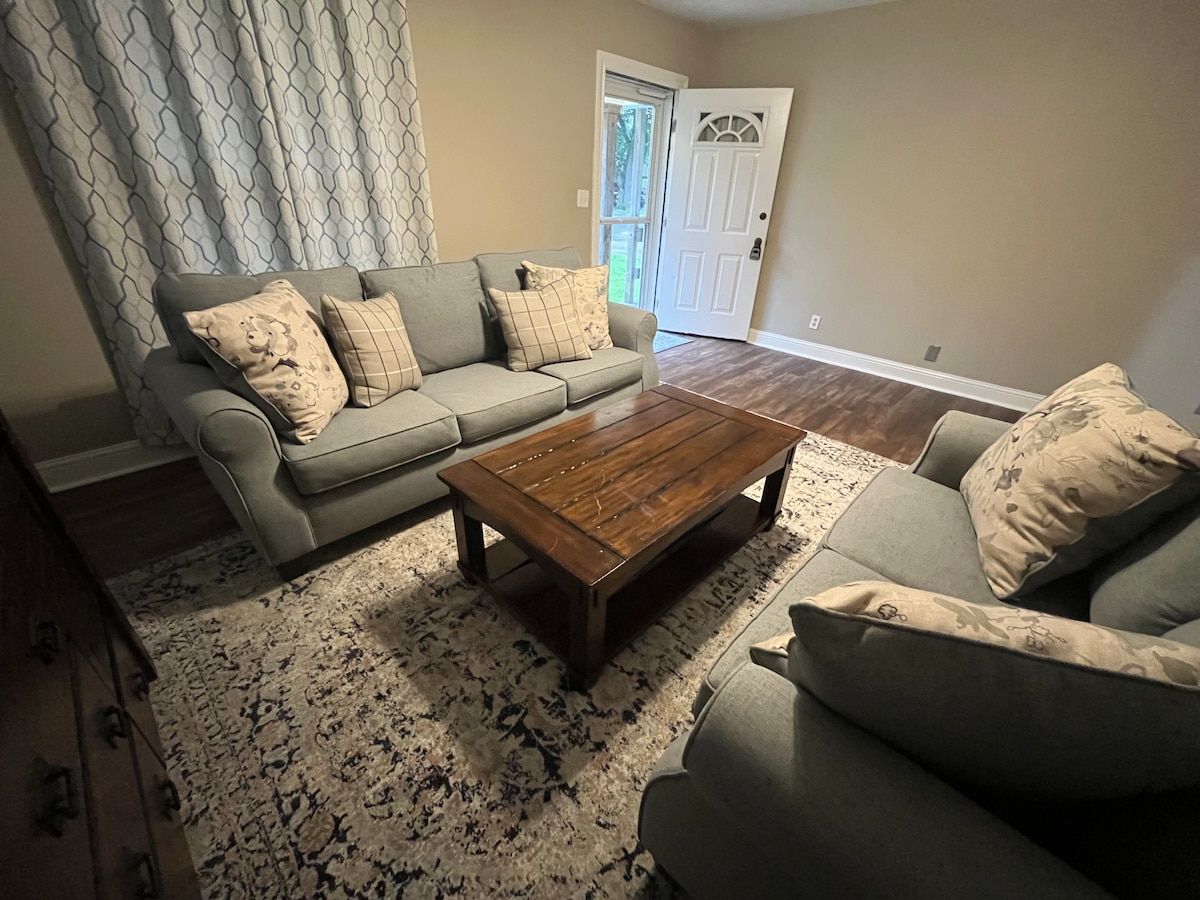 Dit mooie huis met 2 slaapkamers is geweldig voor een snel uitje, maar is geschikt voor iedereen die een lang verblijf nodig heeft. Gasten hebben toegang tot de gehele woning, inclusief een wasmachine en droger! Er is een lange oprit met meer dan veel ruimte voor je voertuig(en). Dit huis heeft alles wat je nodig hebt om je verblijf warm en welkom te maken! Met alle benodigdheden: oven, magnetron, koelkast, volledige keuken, 2 queensize bedden, eethoek, woonkamer met 32inch tv, Blu-ray-speler met Hulu-abonnement, 2 tafels en badkamer.