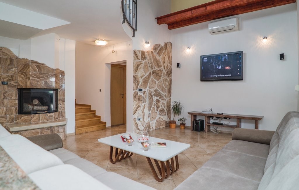 Deze moderne accommodatie is de perfecte keuze voor mensen die in groepen reizen. Op slechts 50 meter van het appartement ligt de 'Apfel Arena' met sport-, culturele en gezondheidsfaciliteiten. Het appartement is luxe ingericht met jacuzzi voor 5 en finland sauna. Op het terras is er een privézwembad, ligstoelen om uit te rusten en een gasgrill voor een perfect diner, met uitzicht op de berg Biokovo