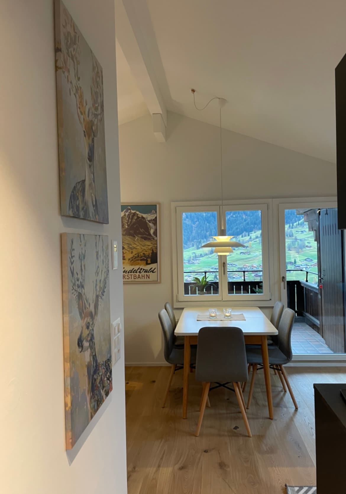 Gezellig 3-kamerappartement op de tweede verdieping van een chalet voor twee gezinnen. Onlangs gerenoveerd in 2025 (keuken en badkamer) en uitgebreid en nieuw uitgerust met een wasmachine. 65 m2, rustige ligging tussen land en dorp. Naast het buitenzwembad Hellbach, 200 m naar de eerste skibus, terminal in 10 min. lopen, dorpscentrum in 15 min. lopen. Beide zijn ook bereikbaar met de lokale buslijn 123. Prachtig uitzicht op de Eiger North Face.