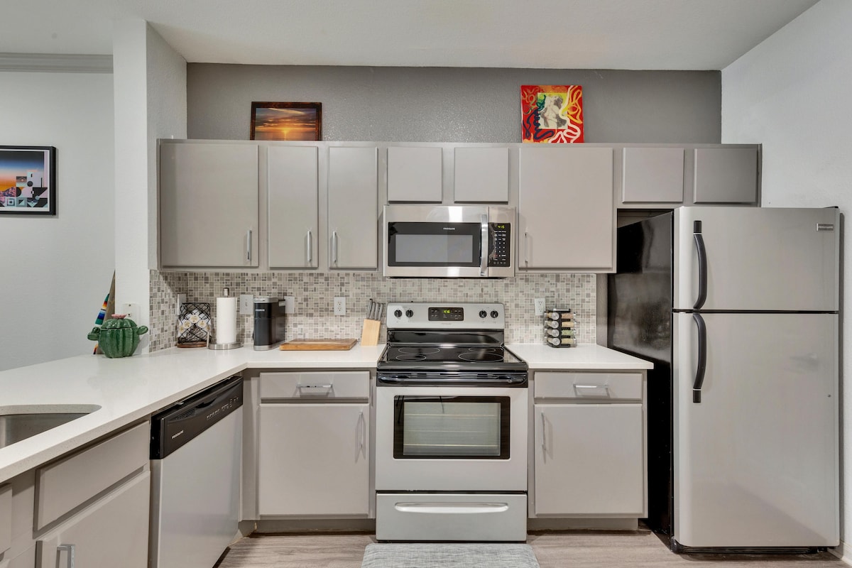 Je kunt je zoekopdracht nu stoppen. Je hebt zojuist de perfecte plek gevonden om te boeken voor je reis naar San Antonio. ➹ Schoon. Moderne afwerkingen. Gezellige snelle wifi. Snelle reacties van verhuurders. ➹ Je bevindt je in het CENTRUM van alles wat het centrum van San Antonio te bieden heeft. ➹ Geniet van een goede nachtrust met onze dromerige traagschuimbedden. ➹ Breng je dag door om vanuit huis te werken op ons eigen thuiskantoor. Kook een maaltijd voor uw groep in onze volledig gevulde keuken. Breng dan je avonden door met ontspannen met onze 4K smart-tv