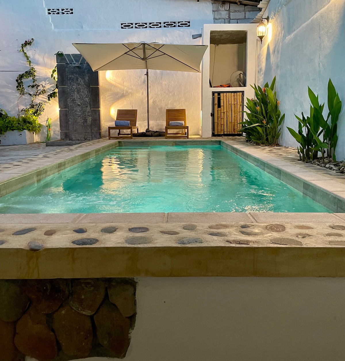 Gerenoveerd koloniaal huis, hoge houten structuur met moddertegel die het fris en aangenaam maakt. Aan de buitenkant begeleidt het de esthetiek van het gebied en aan de binnenkant is het modern, eenvoudig en grote ruimtes. Het decor behoudt antieke elementen zoals stoelen, tafels en stammen. De sfeer is aangenaam, vriendelijk en vol licht, het zwembad gelegen in het centrum van het huis is voorzien van twee stranden die nuttig zijn om te zonnebaden of voor het plezier van jonge kinderen.