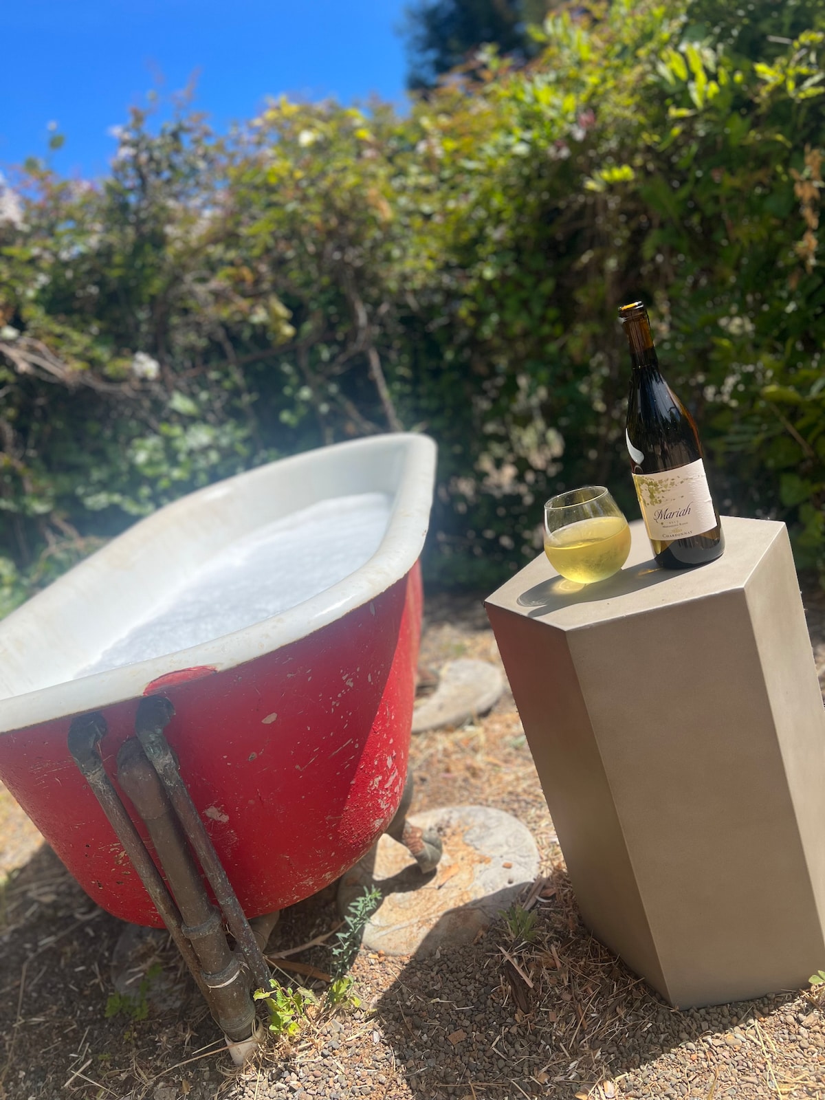 Private, cozy, modern cottage with towering redwoods, blue water views, and a hot tub, located in Anchor Bay, walking distance to the Anchor Bay beach and town! Listen to seals barking and the ocean waves as you soak in the hot tub or relax on the deck surrounded by redwoods. The house is modern & comfortable w/ 2 bedrooms, a full bath with a soaking tub, fully appointed kitchen, vaulted ceilings & open floor plan. Great WIFI, tons of CHARM, and even a small fenced area for your furry friends!