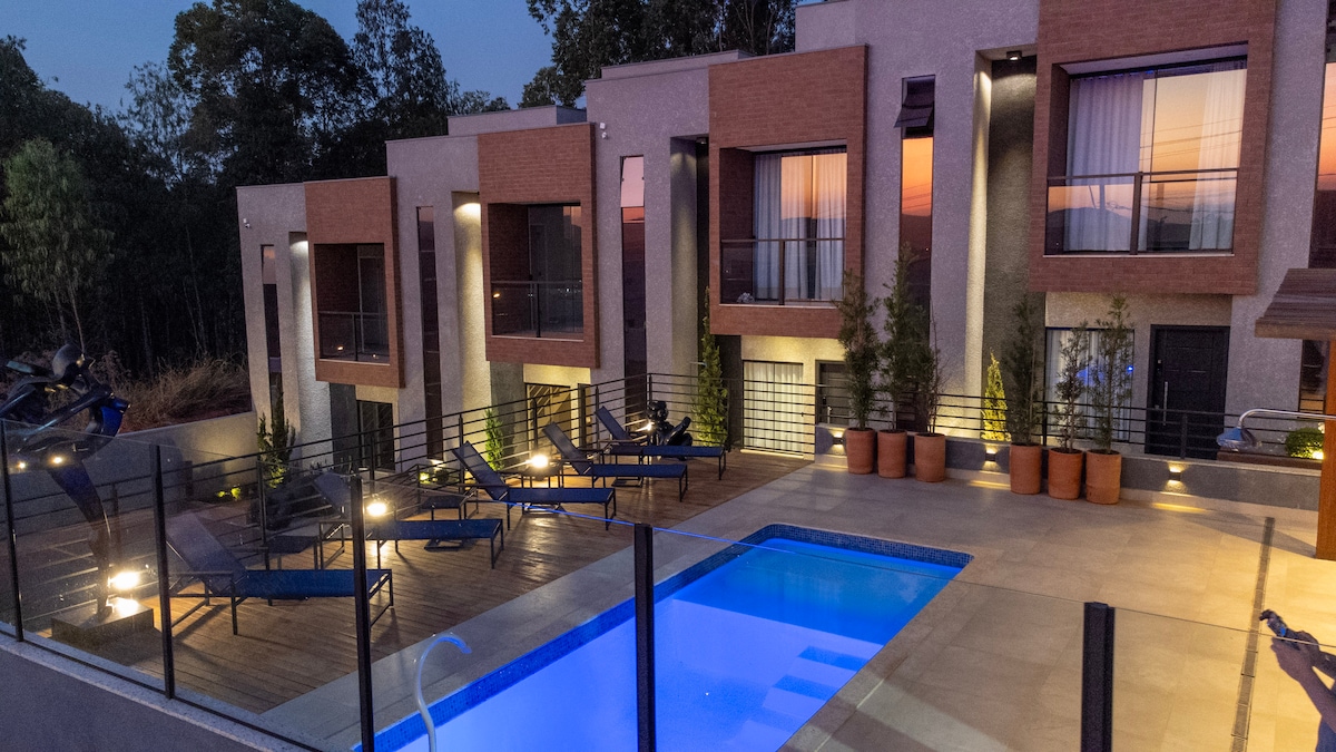 Our apartment is a unique option. Newly built and furnished, it is in a very quiet and beautiful neighborhood, with a great location close to everything you need for your comfort and tranquility. Comprising 02 bedrooms with balconies and views of the city and mountains, 01 suite, 01 guest bathroom, combined living room and kitchen, and laundry room. The garage holds up to 2 cars. And we have a barbecue area that can be used by prior arrangement.