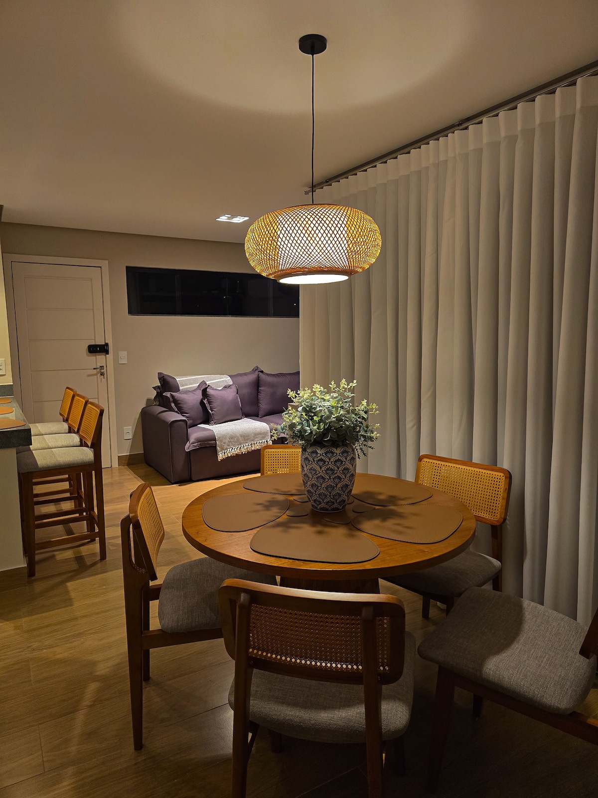 Comfort, gezelligheid en kunst. Villaggio Augusto Baeta is een 5 appartementengebouw dat we Aptos Boutique en Galeria noemen vanwege zijn kenmerken in decoratie en architectuur. Op de tweede verdieping heeft het een woonkamer met een prachtig 180º uitzicht op Morro do Chapéu en de stad. Het is gelegen in een rustige buurt op 2 km van het centrum en met gemakkelijke afslag naar de belangrijkste bezienswaardigheden van de regio. Airconditioning in de slaapkamer van het paar.