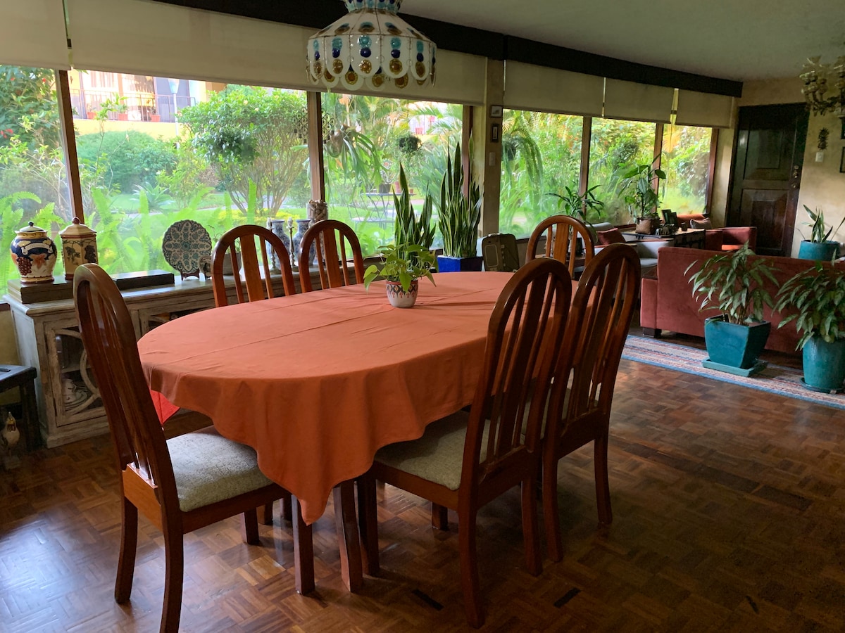 Volledig appartement met een mooie binnentuin. Je kunt het meeste uit je verblijf halen door op een centrale locatie te zijn en te ontspannen op een rustige plek met een tuin. Gelegen op 20 minuten van La Aurora International Airport, op 10 minuten van restaurant, ziekenhuizen en dicht bij het openbaar vervoer, dat rechtstreeks naar het historische centrum leidt. Naast de accommodatie ligt een supermarkt en twee blokken verderop ligt een Torre Express-supermarkt