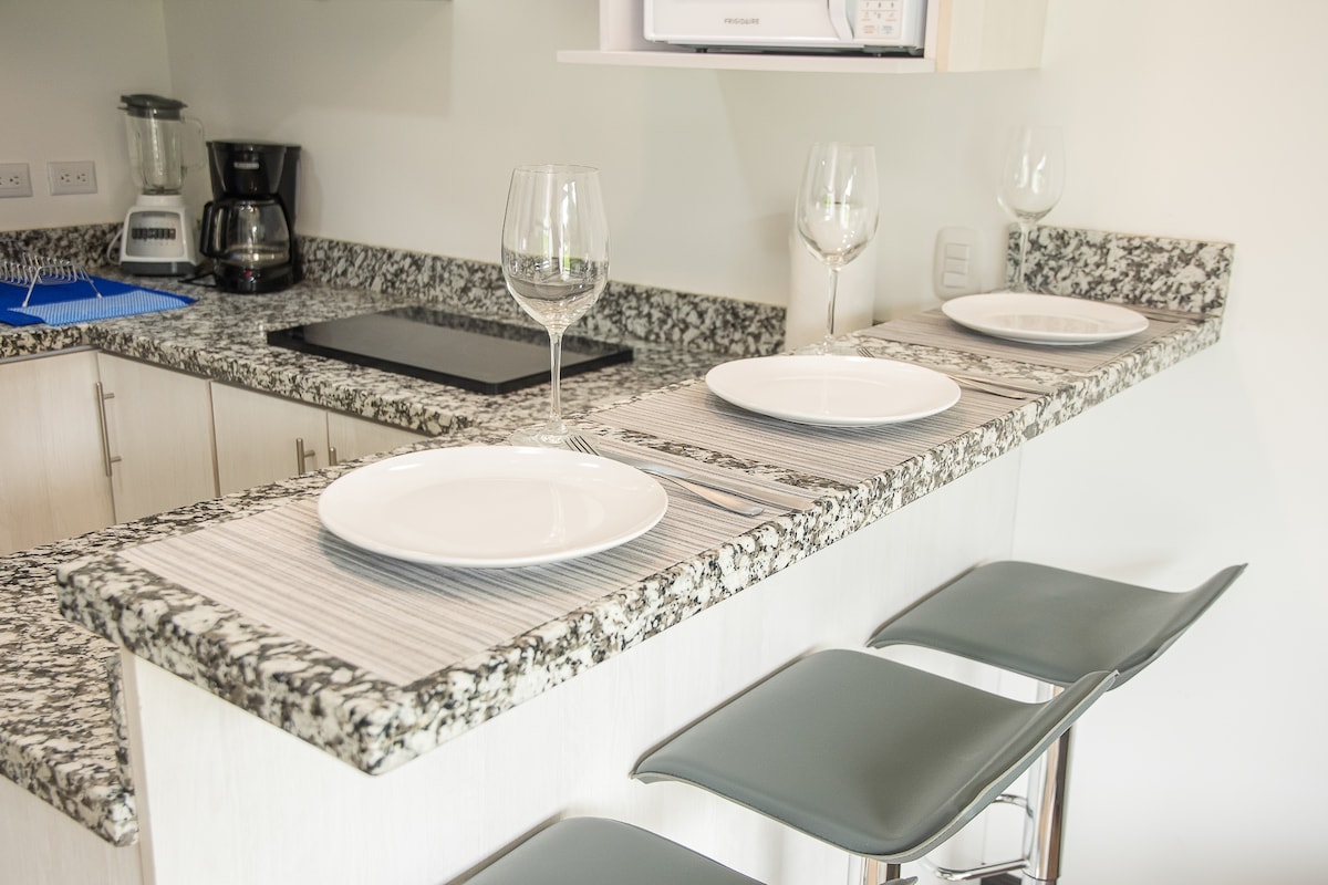 Na een lange vlucht is er niets beters dan aankomen in je eigen privé-oase op slechts 5 minuten van de luchthaven, waar je kunt ontspannen op de ruime buitenterras. En als je naar huis terugkeert, is dit de perfecte plek om op te laden en jezelf voor te bereiden op een vlucht. Elk detail in onze verhuur is ontworpen met als doel een ruimte te creëren die gastvrij en uitnodigend aanvoelt. Van het zachte beddengoed tot het privéterras, ik heb een ruimte gecreëerd waar je kunt genieten van de Pura Vida levensstijl.