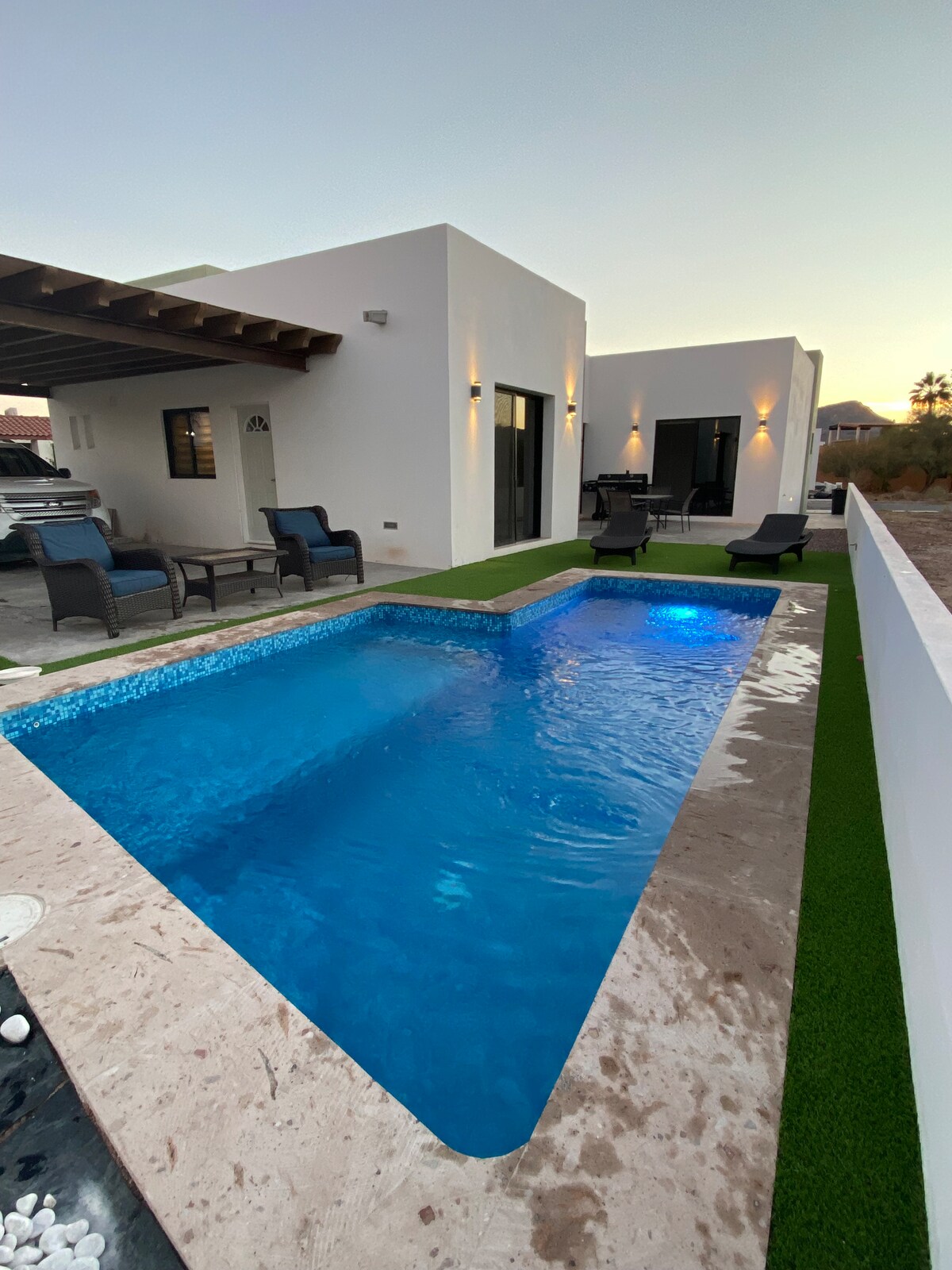 Neem het hele gezin mee naar deze geweldige plek met genoeg ruimtes om plezier te hebben. Het huis heeft een grote grill om de beste barbecues te maken met zijn familie en vrienden. Een zwembad met een opgeruimd gebied voor de allerkleinste. En open, comfortabele, zeer ontspannende ruimtes. Bekijk de prachtige zonsondergang die San Carlos moet bewonderen.
