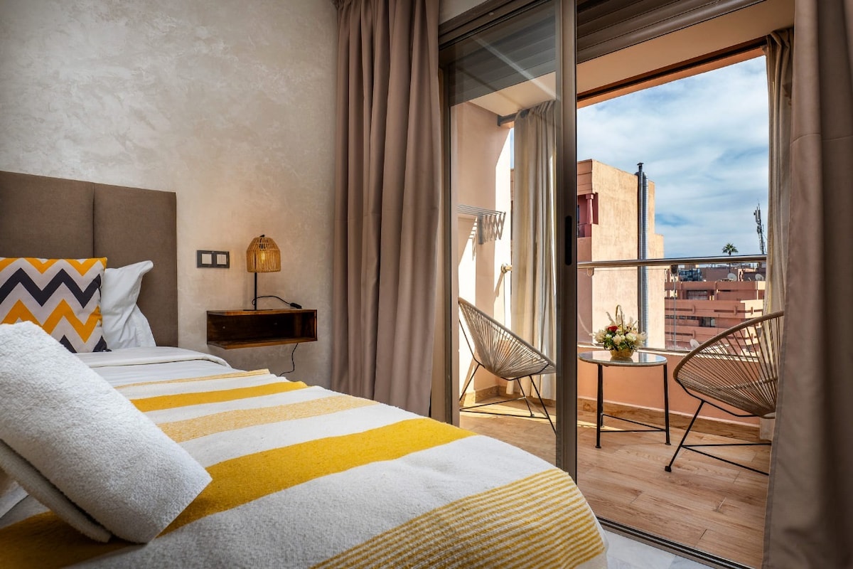 Moderne 1BR Downtown Marrakesh – Balkon, airconditioning, wifi