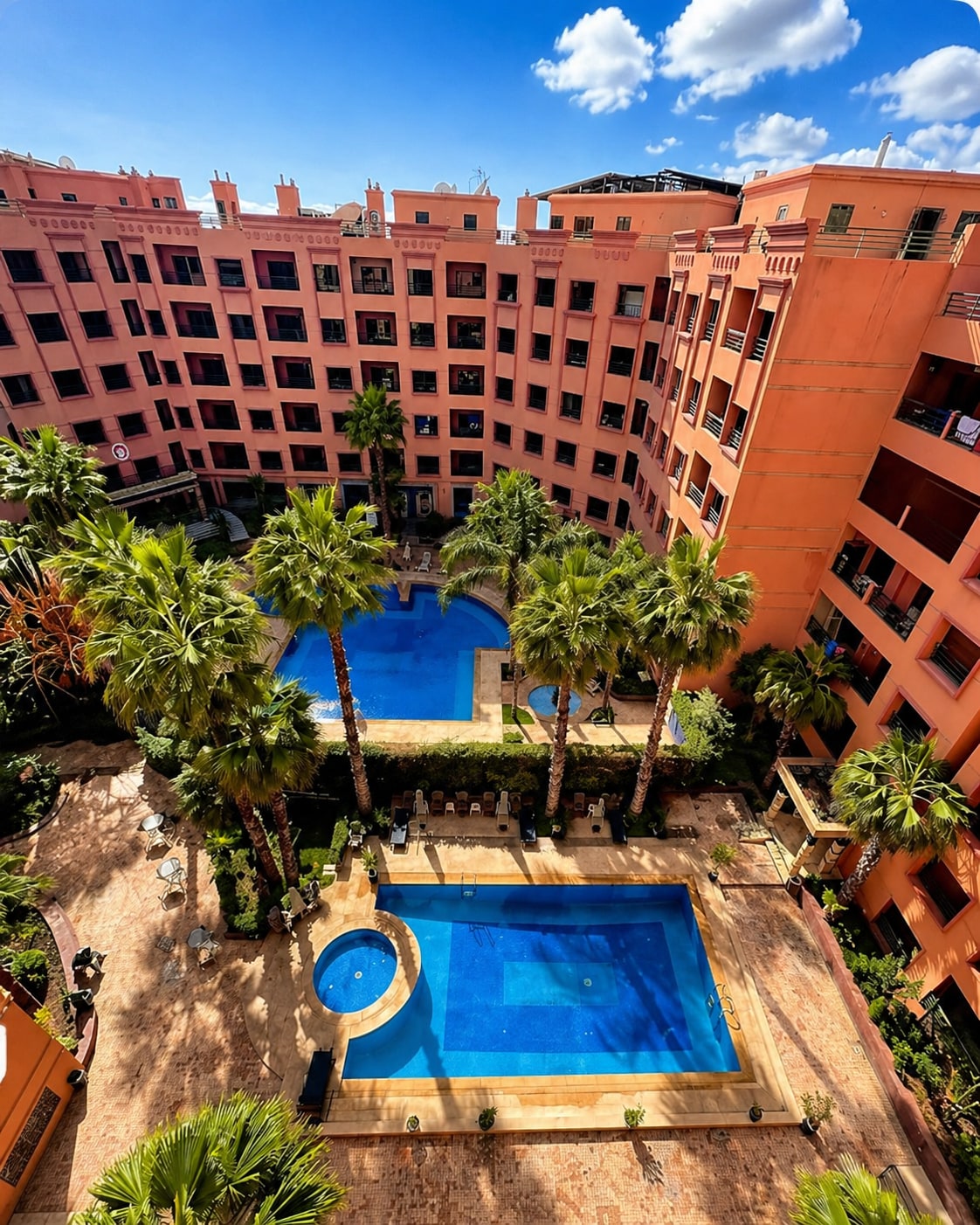 Gloednieuw appartement met moderne apparatuur en voorzieningen, met twee grote privézwembaden, gelegen in een beveiligde residentie met een lift. Je zult de nabijheid van de unieke cultuur van Marrakech waarderen en, nog belangrijker, de mogelijkheid om onvergetelijke herinneringen te creëren met je dierbaren. De ruimte Vanaf het moment dat je dit prachtig ontworpen appartement binnenstapt, zul je gefascineerd zijn door de aandacht voor detail en de focus op comfort.