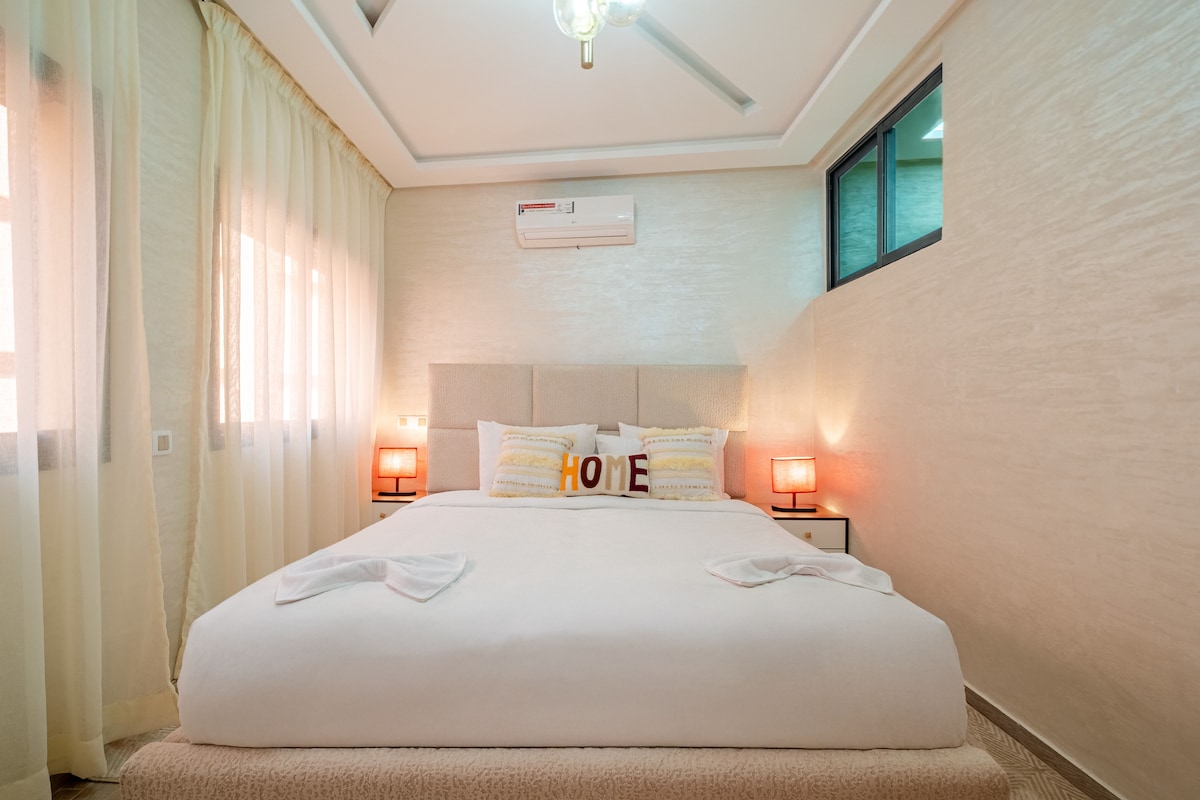 Verblijf in het hart van Marrakech in ons appartement met 2 slaapkamers en 2 badkamers. Geniet van high-end Simmons beddengoed, snelle wifi (glasvezel) en moderne inrichting met een etnische twist. Volledig uitgeruste, volledig uitgeruste keuken, stijlvol bad en Italiaanse douche. Op korte loopafstand van het Jemaa el-Fna-plein, Plazza en Carré Eden. NB: Ongehuwde Marokkaanse stellen zijn niet toegestaan.