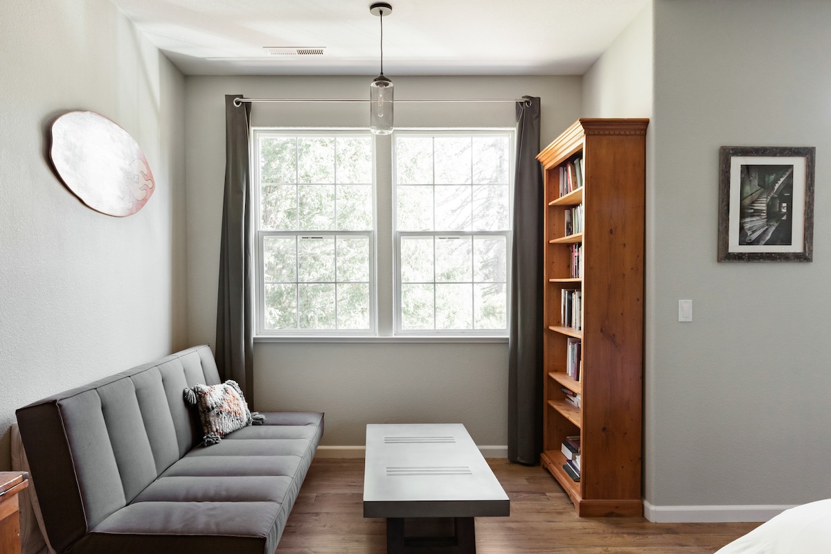 Kom tot rust in dit serene toevluchtsoord, omringd door sequoia's in de buurt van de prachtige Russian River. Je hebt je eigen 1br/1ba beneden ruimte met privacy, 2 queen bedden, en een aparte/privé ingang. Deze accommodatie heeft een prachtig uitzicht op de tuin, evenals een beek aan de achterkant van de accommodatie. Op 5 minuten rijden van het centrum van Guerneville, op 15 minuten rijden van Armstrong Woods en op 20 minuten rijden van de Stille Oceaan. *Huisdieren zijn toegestaan, maar moeten worden opgenomen in de reservering om te worden goedgekeurd voor een verblijf.