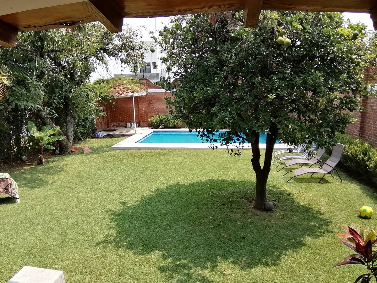 Toda la casa y su alberca privada son solo para ti y tus invitados, las 3 recamaras cuentan con baño completo y medio baño para el área de la alberca, las mascotas son bienvenidas, Aurrera a 5 minutos en auto y muy cerca tienditas y pizzerías y muchas cosas mas incluso caminando, la casa cuenta con Todo y muy cerca Él Rollo, el tecnológico, el estadio de futbol Coruco Diaz, Tequesquitengo, Jardines de México y la pista de Parachute entre muchas cosas más y a solo 15 min en auto de Villa Serena.