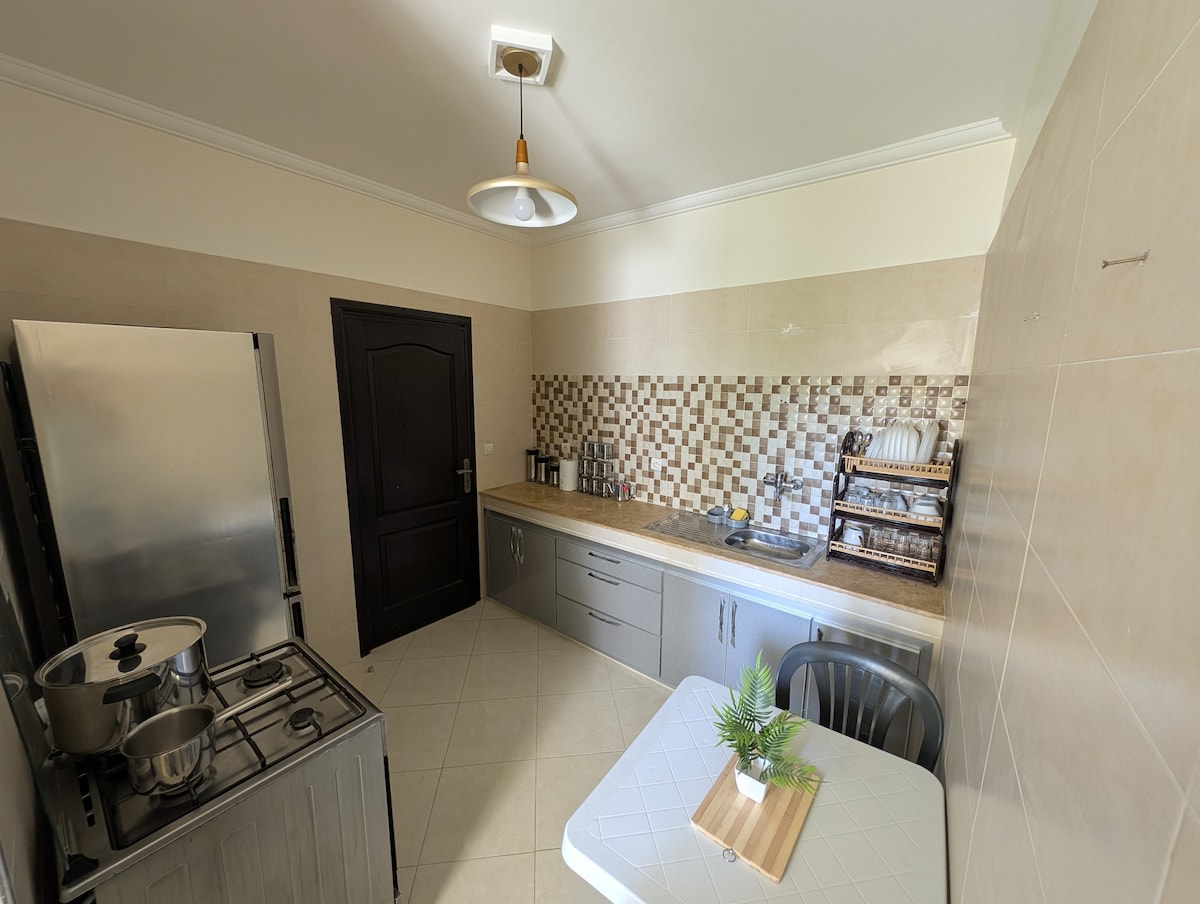 Profitez d’un appartement lumineux et cosy dans un quartier calme, avec cuisine entièrement équipée et salle de bain avec serviettes. McDonald's à 10 min à pied, épicerie en face. L’aéroport à 10-15 min en voiture. Cap Spartel et Grottes d’Hercule à 15-20 min, plage à 25 min. Stationnement gratuit devant la maison. Parfait pour un séjour confortable et authentique à Tanger, proche des marchés, boutiques et sites touristiques.