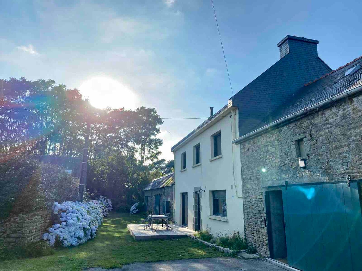 Ontspan aan zee in deze rustige, stijlvolle ruimte. Deze gerenoveerde boerderij is comfortabel, uitgerust en comfortabel. Linnen inbegrepen. De kamer is op een grote lichte tussenverdieping. Je hebt een terras en een individuele tuin. De GR 34 ligt op 20 minuten lopen langs landwegen. Stranden liggen op enkele minuten rijden met de auto of fiets, net als voorzieningen. Halverwege Lorient, Concarneau, Pont-Aven, heb je genoeg tijd om het zuiden van Bretagne te bezoeken.