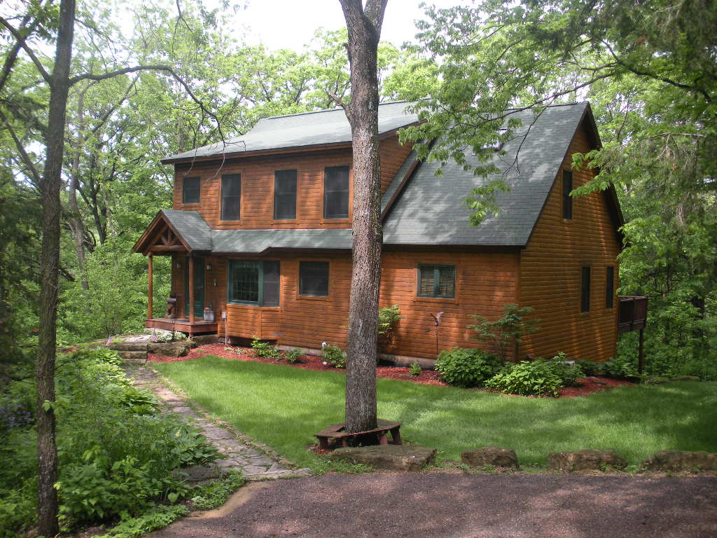 This custom log cabin is the perfect getaway for friends & family seeking the solitude of the Galena Territory and fine dining and shops just 10 minutes away on Galena's Main Street. Each of the 3-levels offers an owner's suite with bath. Cozy up to 2 fireplaces, grill on the deck, or make 'smores at the firepit. The cabin has high speed, fiber internet and the lower-level walkout features a 55” flat screen TV. Guests can access swimming pools & pool tables at the Owner's Club 7 minutes away.