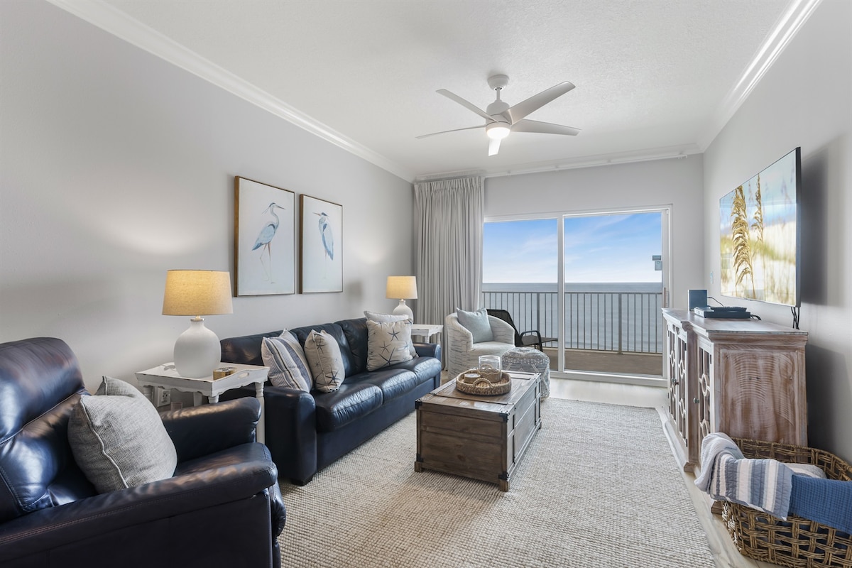 Neem je slippers mee en ontspan in dit strandappartement met uitzicht op de Golf van Mexico. Beach Haven heeft stoelen op de eerste rij en een prachtig uitzicht op de Golf en de State Pier vanaf een gebogen balkon! Geniet ook van binnen- en buitenzwembaden, een bubbelbad en een sauna! De begeerde locatie ligt aan het minder drukke uiteinde van het strand in de buurt van Pier, Gulf State Park & Sea en Suds. Perfect voor koppels, solo, zakelijke, sportevenementen en kleine gezinnen. Informeer naar *snowbird*-tarieven. Geniet van prachtige zonsondergangen, het geluid van de branding en ONTSPAN!