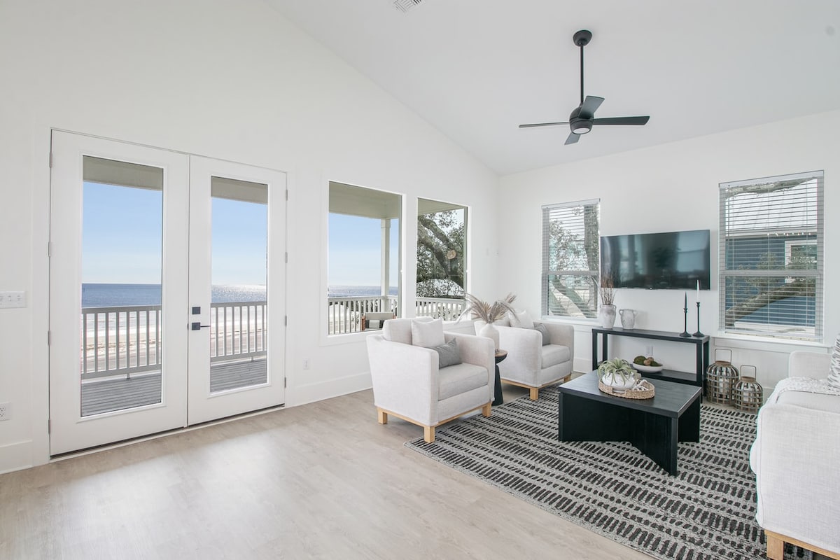 Steps from the water, New Build in Gulfport! Escape and enjoy stunning beach sunrise/sunsets from one of the two decks overlooking the Gulf or simply cross Beach Blvd and put your toes in the white sand beach. Well appointed, 2 story, 2 bedroom home located directly on Beach Blvd overlooking the ocean and pristine white sand beaches. Less than 2 miles from downtown Gulfport, Jones Park, and Island view Casino or a 25 min walk. Located between Biloxi and Bay St. Louis and < 1.5 hr to NOLA