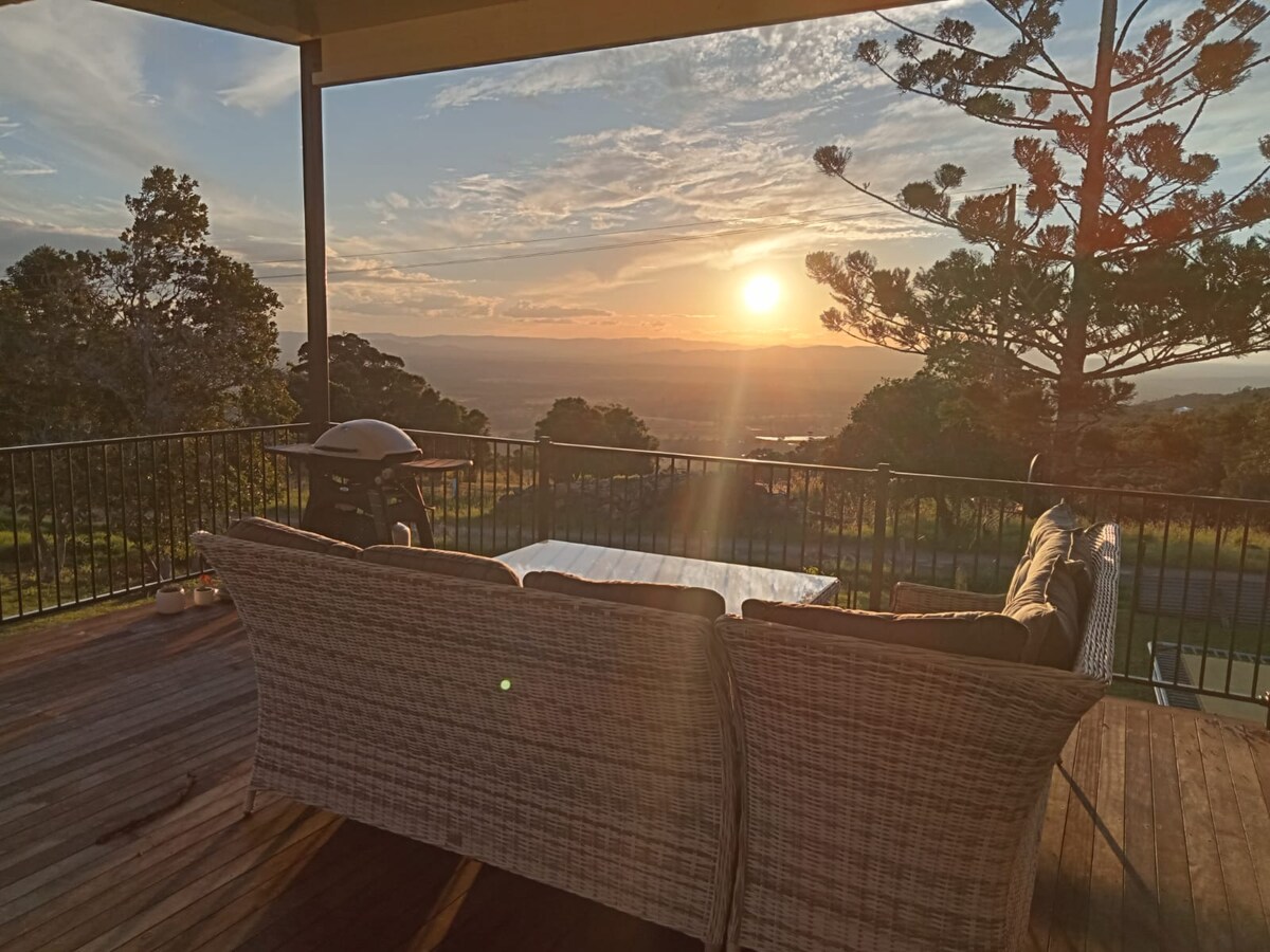 Relax and unwind at our tranquil mountain top property, overlooking rolling pastures & bushland as far as the eye can see. Choose between 2 fire pits to spark at sunset, while you watch the cattle graze the hills. Pour a glass of wine and step into our outdoor tub to feel the serenity. Take in the sunrise to the sounds of nature while enjoying a cuppa & watch the wallabies pass by. We're all about the simple things in life. Rain or shine, the views of our countryside paradise never disappoint.