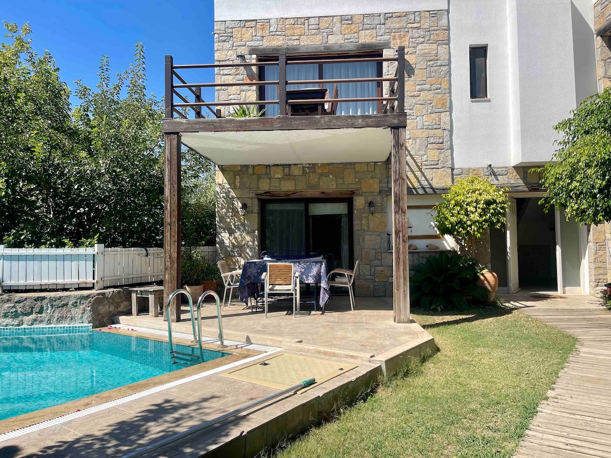 Als je op zoek bent naar huiscomfort, stilte, rust, zwembad, wekelijkse kamerverzorging en in de natuur zijn, ons huis is geschikt voor die. Tijdens een verblijf in sereniteit ben je slechts 15 minuten verwijderd van het beroemde entertainmentleven van Bodrum, op slechts 6-7 minuten afstand naar de beste heldere nabijgelegen stranden met de auto of je kunt zelfs naar de zee lopen in slechts 4 minuten.