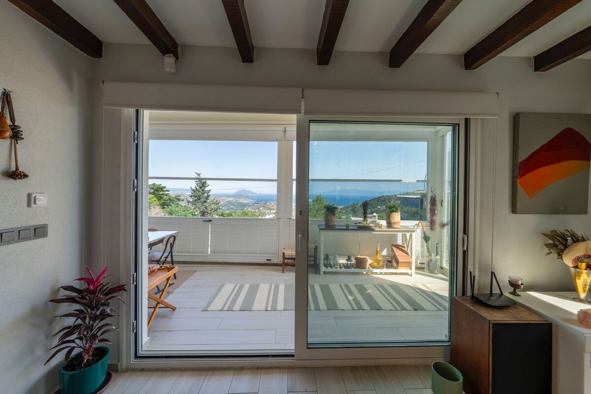 Ons huis is in 2022 volledig gerenoveerd en heeft een modern architectonisch ontwerp. Alle kamers hebben een prachtig uitzicht op de Egeïsche Zee. Er is een open keuken woonkamer en toilet op de eerste verdieping van ons duplexhuis. Op de eerste verdieping bevinden zich 2 slaapkamers, 1 kleedkamer, een badkamer en een terrasbalkon. De kleedkamer heeft ook een bed om te gebruiken in geval van nood. Beide slaapkamers hebben toegang tot het balkon. Gundogum en zonsondergang kunnen in de zomermaanden worden bekeken.
