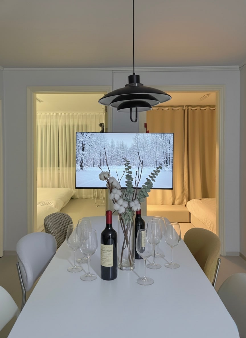💜 Dit is een rustig huis op de tweede verdieping van een nieuw gebouw. 💜 Wij bieden een kwaliteitsaccommodatie met een schoon en mooi concept voor een redelijke prijs. 💜 23 pyeong ruime en aangename ruimte. Bed en bed in hotelstijl. Onafhankelijke eetkamer met grote tafel voor 6 personen. 50-inch smart-tv (je kunt je persoonlijke account bekijken op YouTube, Netflix en Teabing) Geen extra 💜 gasten toegestaan. Onmiddellijke uitzetting zonder restitutie indien betrapt (bezoekers mogen niet naar binnen) ※ Controleer met CCTV in de gemeenschappelijke ingang. Bij reservering voor 💥1 of 2 personen: kies uit 1 slaapkamer of 2 slaapkamers (1 basisslaapkamer aanwezig) Andere slaapkamer gesloten 30.000 KRW extra kosten per nacht voor beide slaapkamers 1 en 2 💥 Voor 3 personen: 1 slaapkamer + 2 slaapkamers (super eenpersoonsbed) 💥 Voor 4 personen: 1 slaapkamer + 2 slaapkamers (super eenpersoonsbed + eenpersoonsbed) 🍒 Voor 5 gasten: alle slaapkamers + topper 💜 Geen vochtige doekjes in het toilet. Als het toilet verstopt is, worden er reparatiekosten van 500.000 won in rekening gebracht.