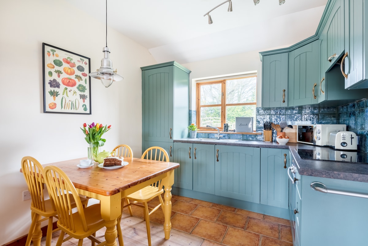 Gezellige luxe studio voor twee aan de rand van het dorp met eigen zonnige binnenplaats, tuin met gazon, kingsize traagschuimbed, en-suite met inloop elektrische douche en volledige keuken met; ventilatoroven, 4-pits keramische kookplaat, afzuigkap, magnetron en, wasmachine/droger. Gratis wifi en smart Freesat TV met DVD speler Elektrische houthaard. Bank. Op minder dan 10 minuten lopen van de heuvel naar de kust en het dorp met strand en faciliteiten. Rust, stilte en privacy. Eigen parkeerplaats en omslagruimte.