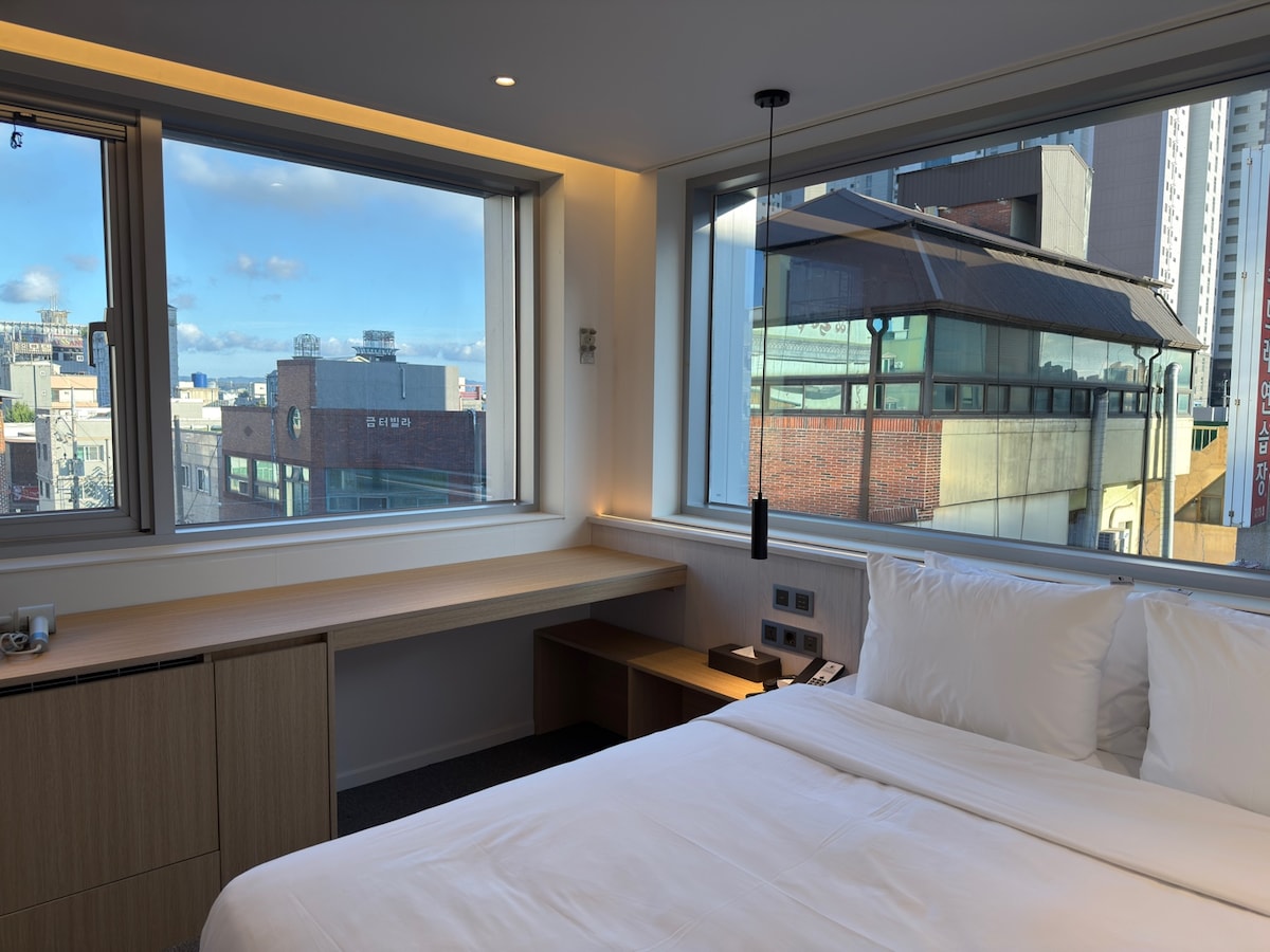 Dit is een accommodatie met uitzicht op de oceaan waar je de zee kunt zien als je's ochtends je ogen vanuit het bed opent. Uiteraard kunt u ook naar de zonsopgang kijken.ā¤ļø Het is een geschikte ruimte voor maximaal vier personen terwijl je in het centrum van Donghae City bent. We vervangen het beddengoed elke keer schoon. De promenade waar je de zee en het bos voor de accommodatie kunt voelen is 'sterk aanbevolen' ~šššš„°