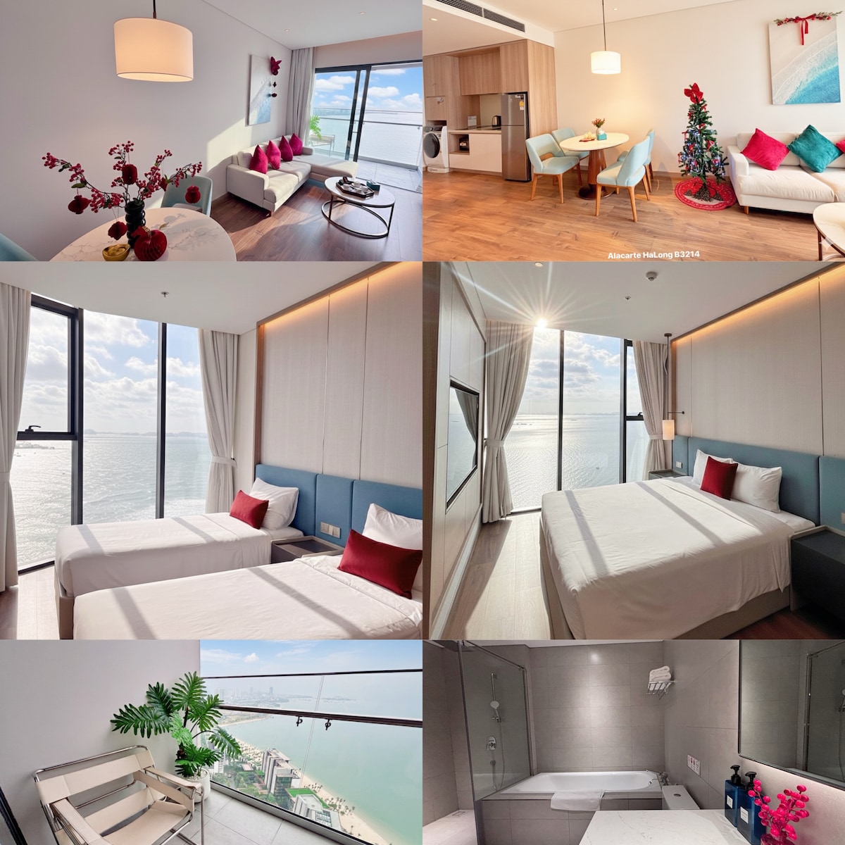 Luxury Apartment at A La Carte Ha Long – Sea & Sunset View (VIP Corner Apartment) Enjoy a modern space with breathtaking views of the sea and majestic limestone mountains, plus stunning sunsets right from your apartment. Work comfortably with a dedicated workspace and high-speed WiFi. 🍽 Room rate excludes breakfast & amenities like pool, jacuzzi, spa, bar... 🚗 Prime location: 1-minute walk to the beach, 5-minute drive to the night market. ✨ Experience the perfect vacation!